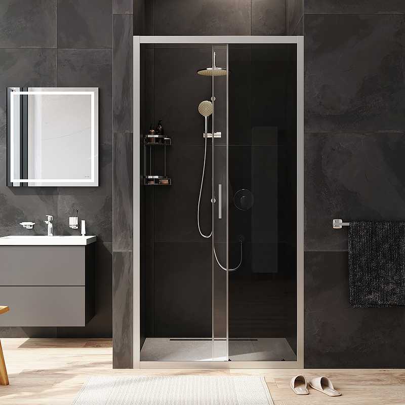 Душевая дверь отличается практичностью и функциональностью. Изделие произведено из ударопрочного закаленного стекла которое надежно фиксируется в нержавеющий алюминиевый профиль при помощи системы скрытых креплений.