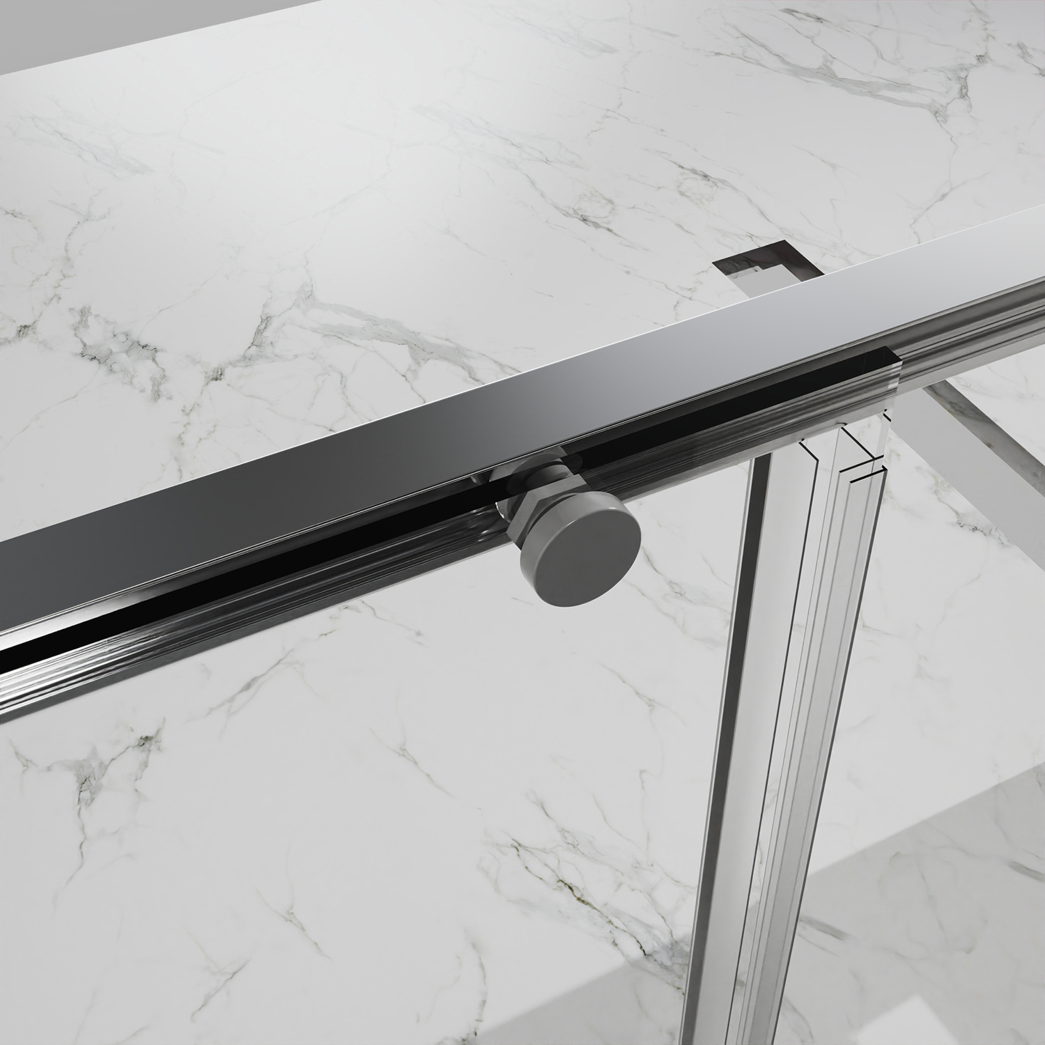 Дверь в нишу Раздвижная, с универсальной (L/R) откатной дверью, на двойных роликах с нержавеющими подшипниками. Ручки выполнены из латуни в цвет профиля.