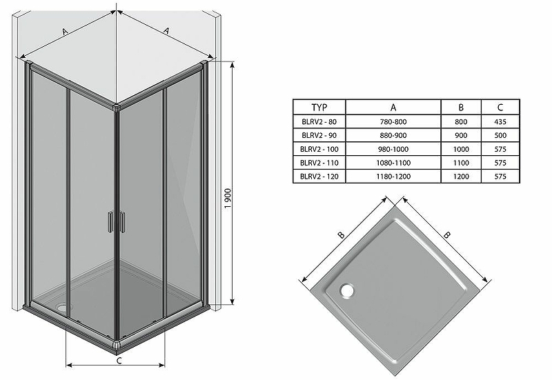 Душевая дверь Ravak Blix BLRV2К-100 1XVA0100Z1.