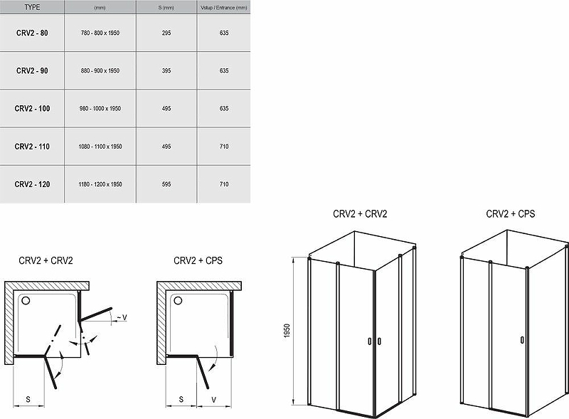 Душевая дверь Ravak Chrome CRV2-80 1QV40100Z1. Для комплектации душевого уголка необходимо купить 2 изделия CRV2 или 1 изделие CRV2 и неподвижную стенку CPS!