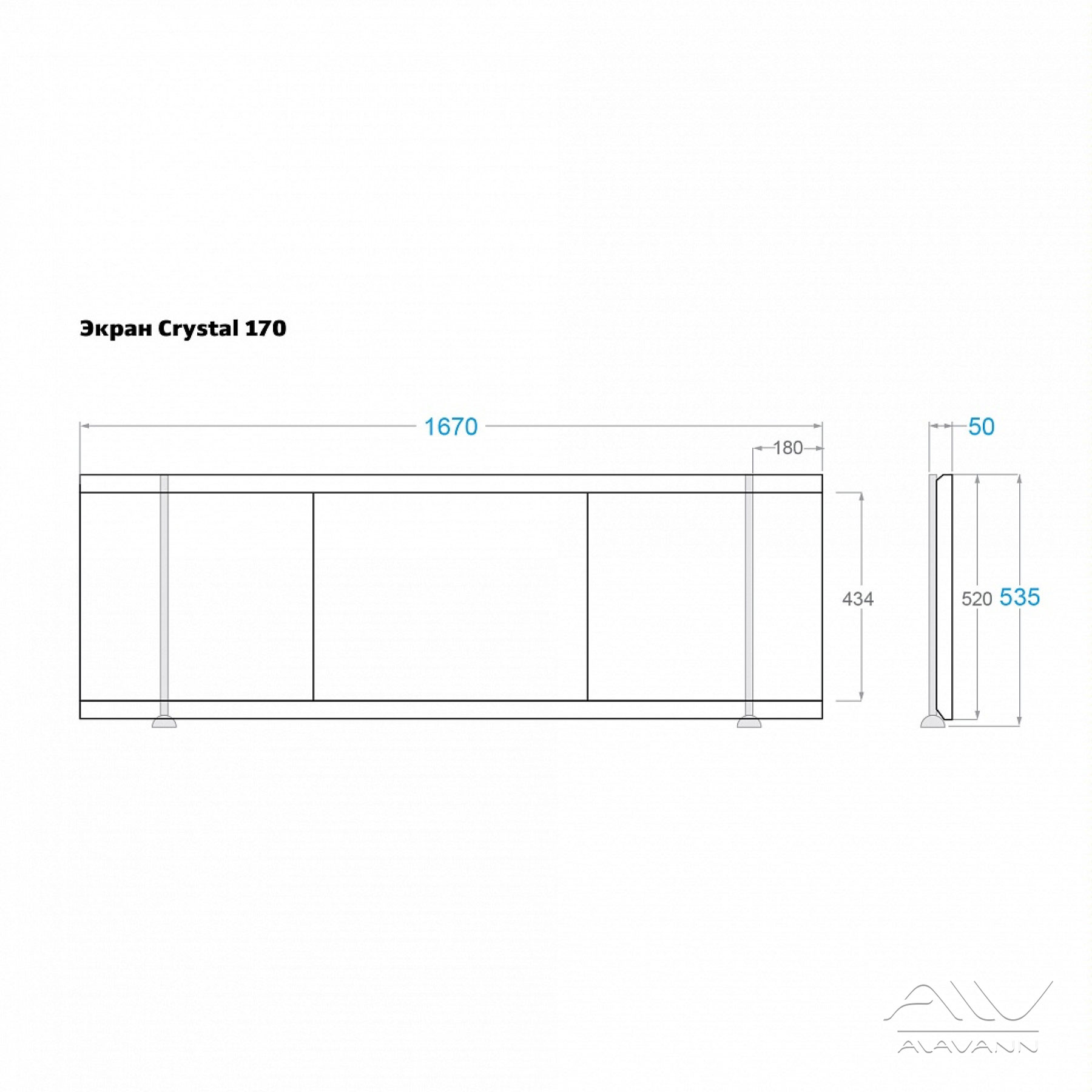 Экран фронтальный для ванны Alavann Crystal 1,7 белый