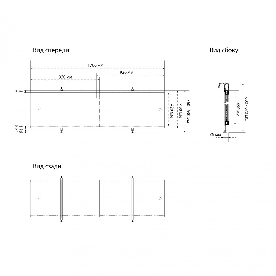 Экран фронтальный для ванны развижной Triton Арт 1780 белый (ST52)