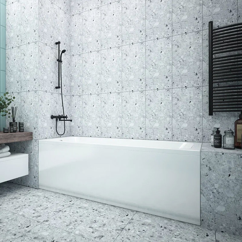 Декоративный съемный экран белого цвета. Идеально сочетается с акриловой ванной ""Blues "" MELODIA. Изготовлен экран из полистирола. Устанавливается с помощью фиксаторов к закладным в бортах ванны.