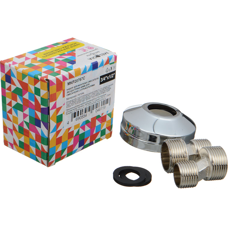 Эксцентрик для смесителя латунь с отражателем 3/4 (пара) MKP20767C эксцентрик представляет собой металлический резьбовой фитинг, предназначенный для жесткого крепления к водопроводу сантехнического смесителя. Его использование позволяет осуществить корректировку положения смесителя в пространстве и компенсировать неточность установки водорозеток и резьбовых патрубков. Комплект эксцентрик с отражателем 2 шт. (пара).