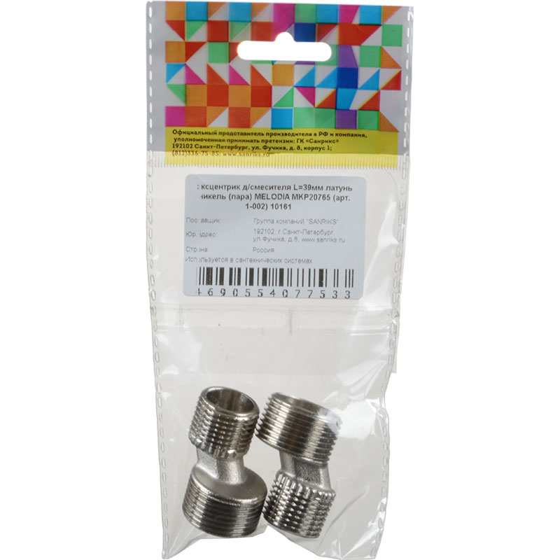 Эксцентрик для смесителя Melodia 1/2"x3/4" L=39мм никель, пара (MKP20765)