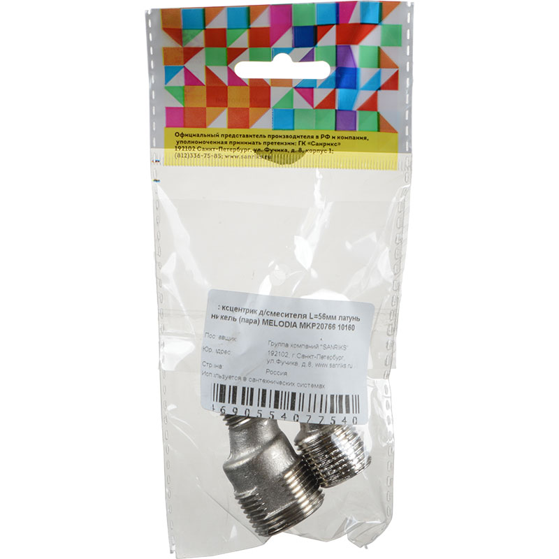 Эксцентрик для смесителя Melodia L=56мм латунь никель (пара) (MKP20766)