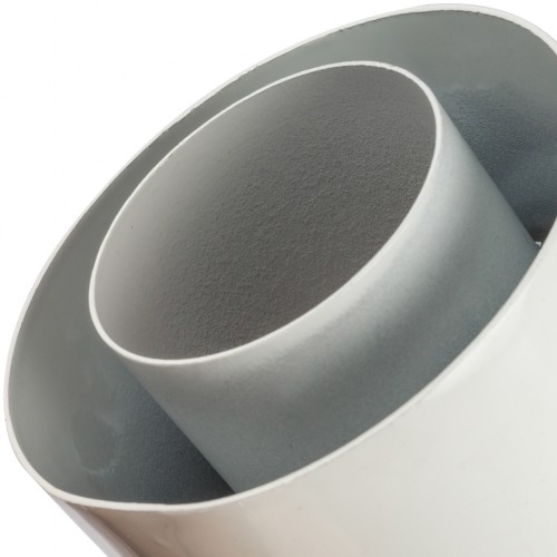 Адаптер имеет коаксиальную конструкцию, которая позволяет одновременно прокладывать внутренние и внешние трубы. Внутренняя труба служит для отвода отработанных газов, а внешняя труба обеспечивает подачу свежего воздуха для горения. Это улучшает эффективность работы котла и снижает риск попадания отработанных газов обратно в помещение.