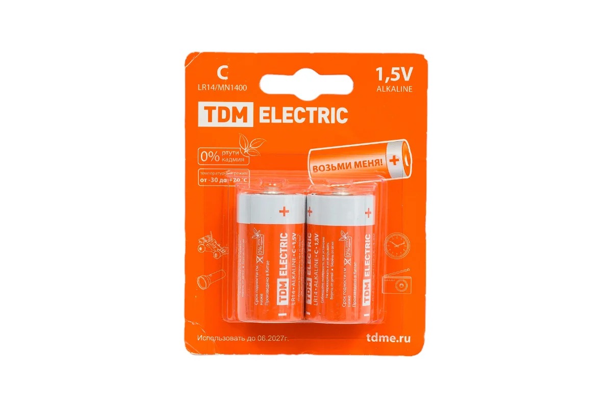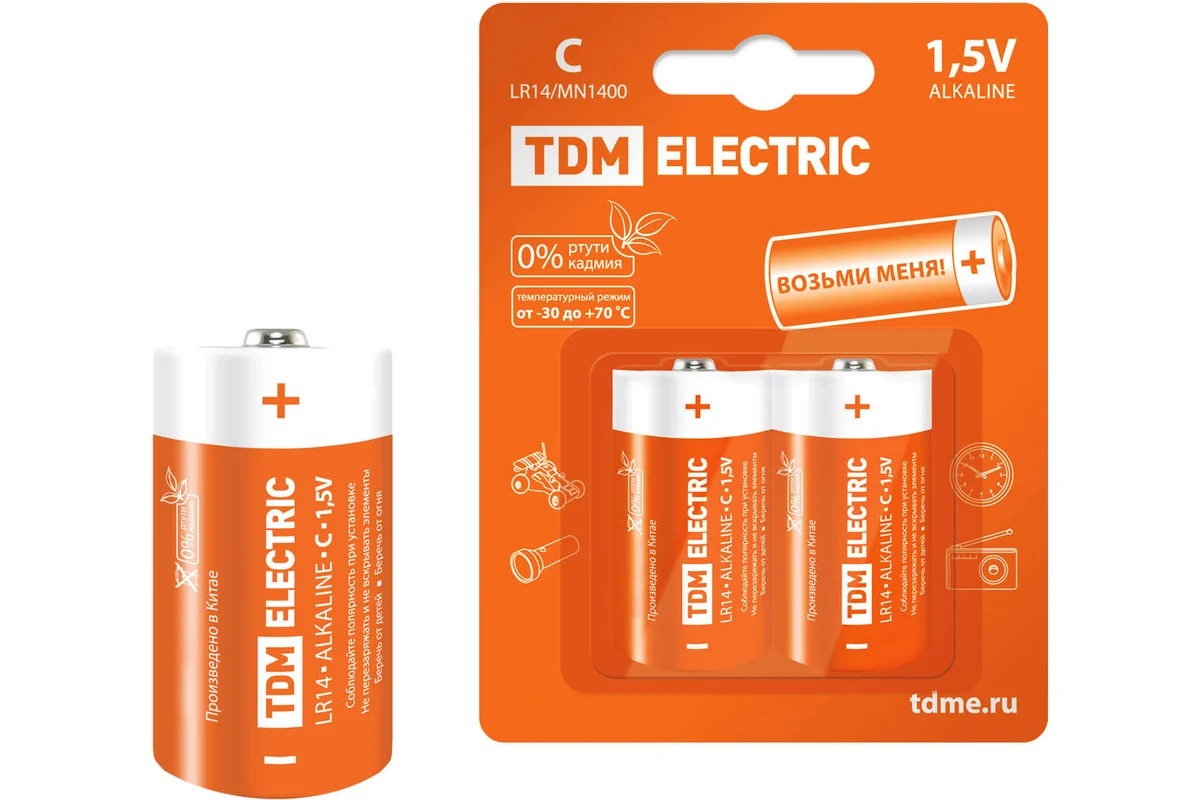 Элемент питания TDM LR14 C Alkaline 1,5V BP-2 (2 шт) (SQ1702-0011)