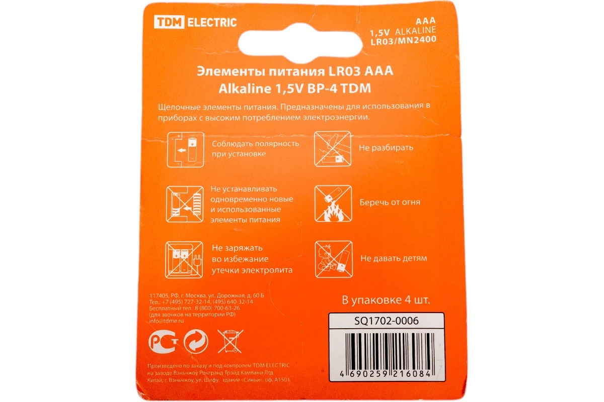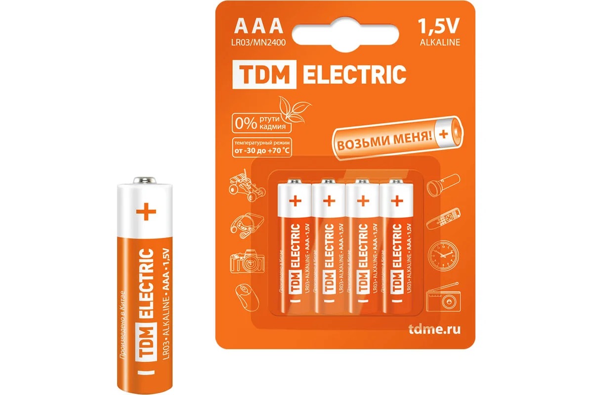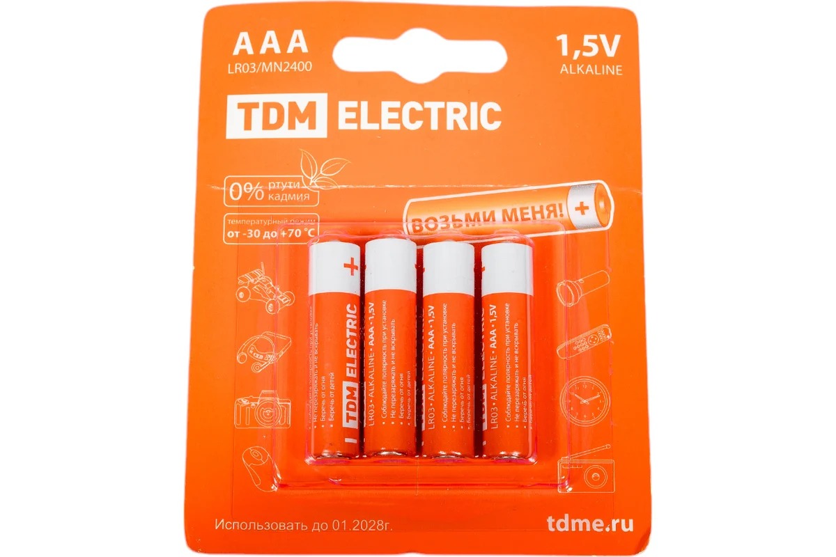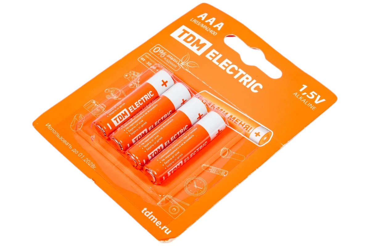 Элементы питания TDM LR03 AAA Alkaline 1,5V BP-4 (4 шт) (SQ1702-0006)