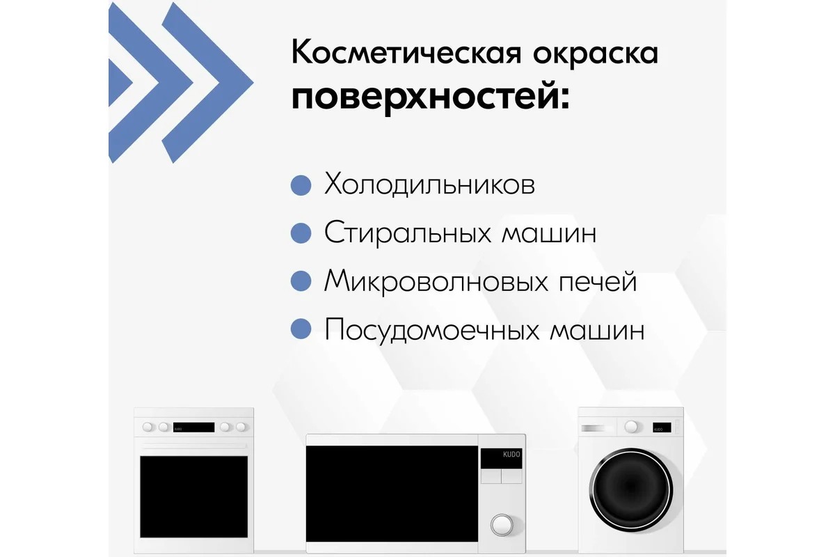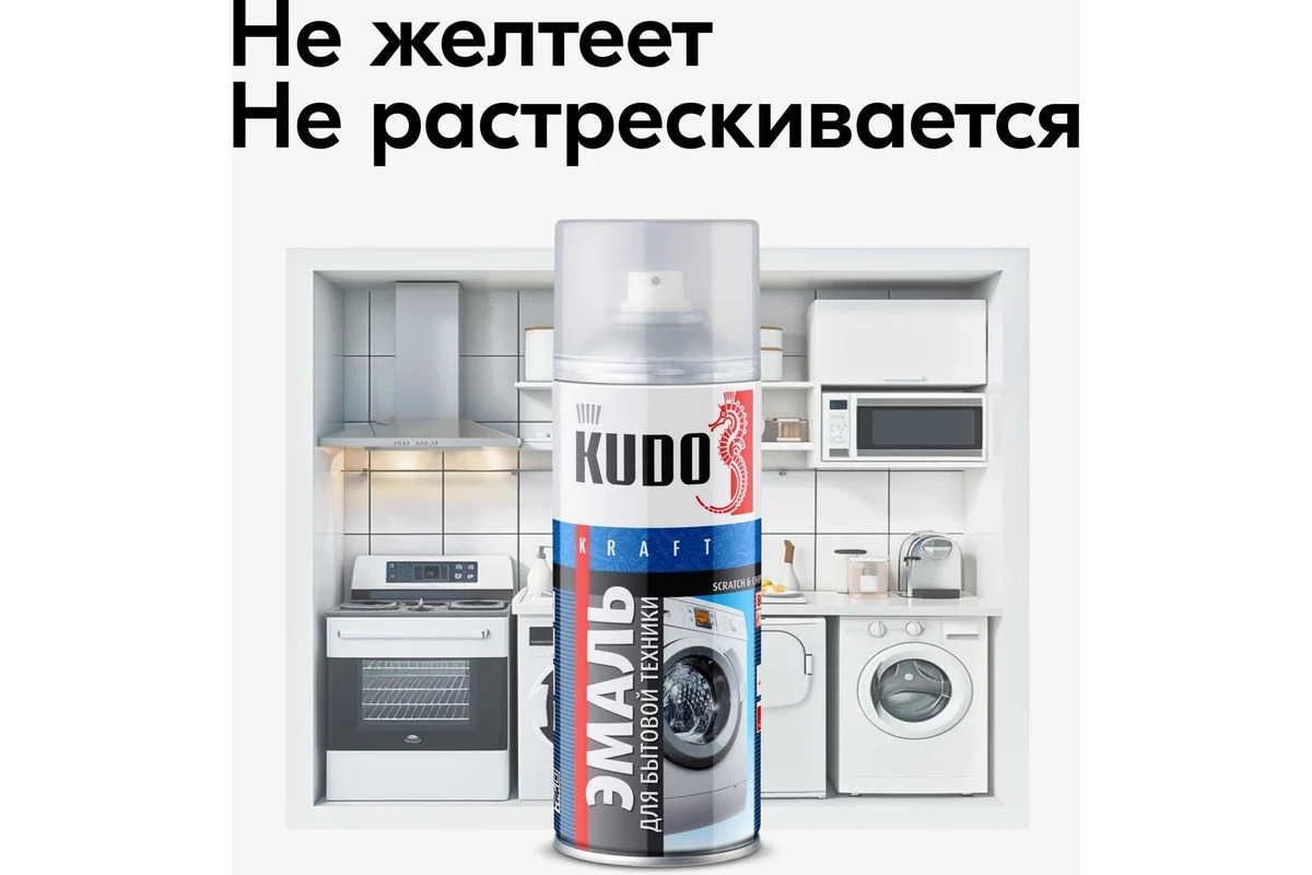 Эмаль для бытовой техники KUDO белая KU-1311 используется для косметического ремонтного окрашивания различной бытовой техники: холодильников, стиральных и посудомоечных машин, микроволновых печей.