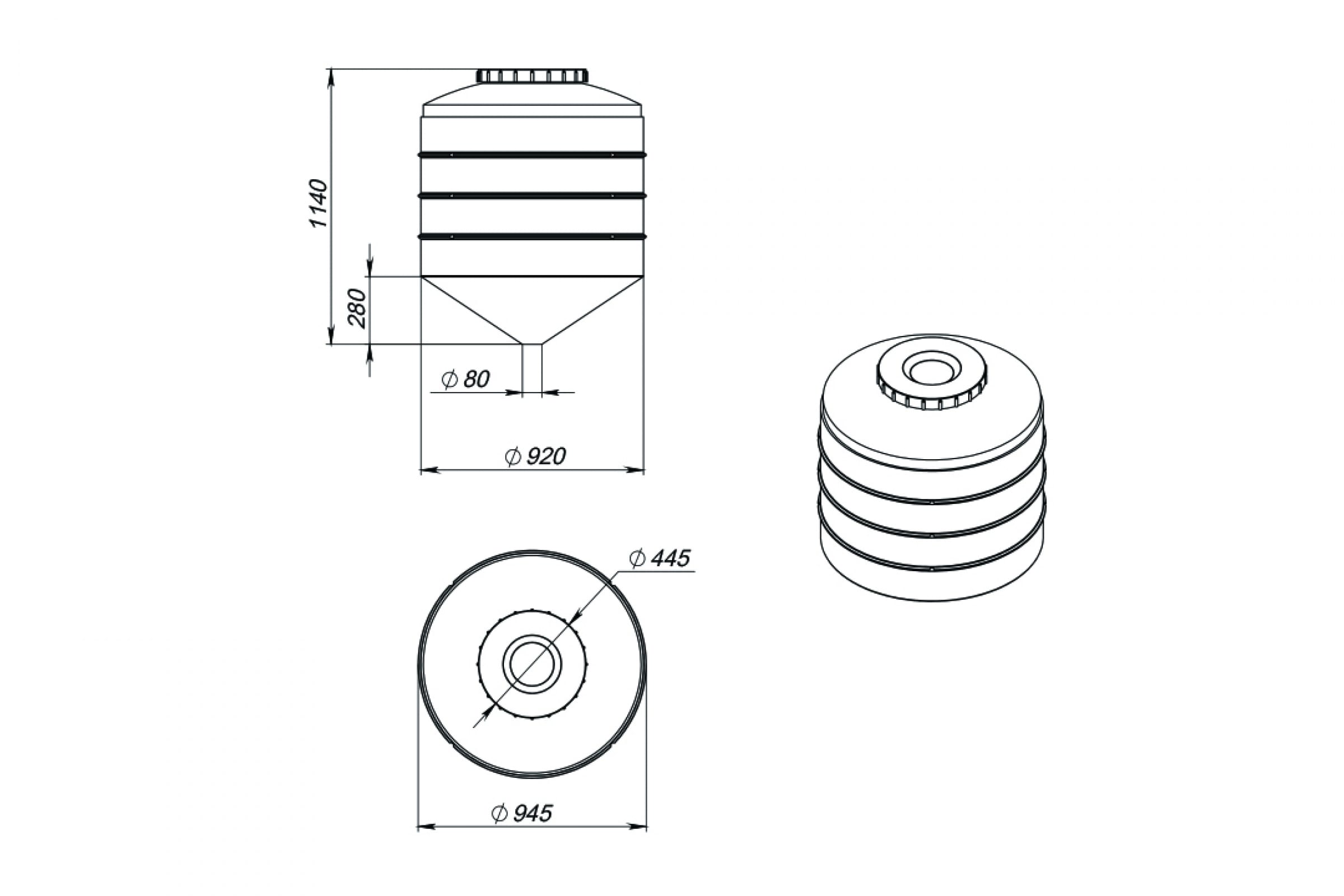 Емкость изготовлена из полиэтилена низкой плотности высокого давления - устойчивость к ультрафиолетовому воздействию, прочность