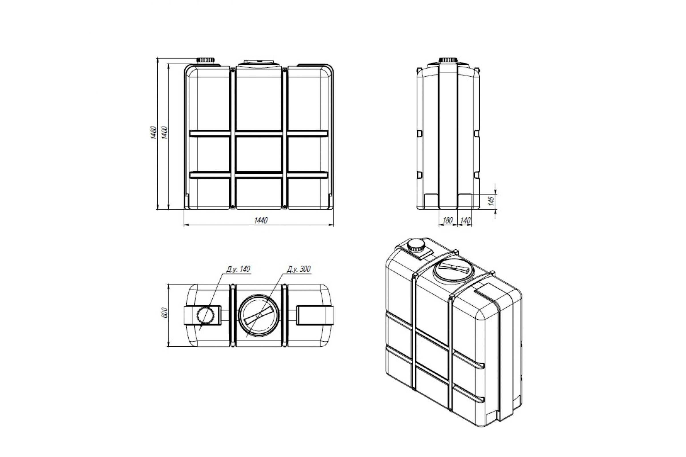 Прямоугольная форма резервуара позволяет свободно проносить его через стандартные дверные проёмы и устанавливать в помещении с ограниченным пространством вдоль стен.