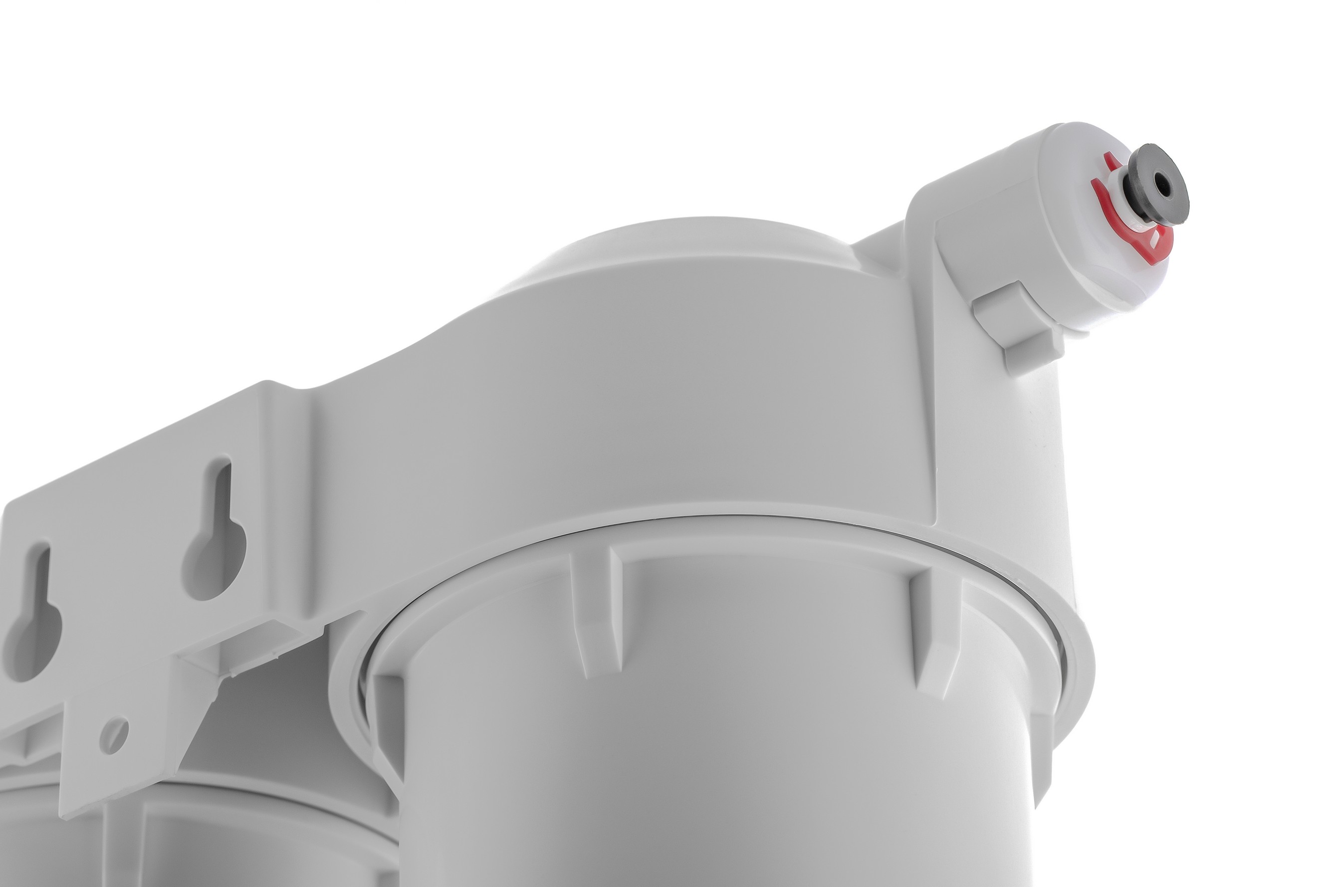 Вода очищается в три этапа сначала через осадочный картридж, затем Карбон-блок СВС и Карбон-блок СВС (Ag). В комплекте к фильтру поставляется кран для подачи очищенной воды №3. Рабочее давление для установки не менее 0,5 атм.