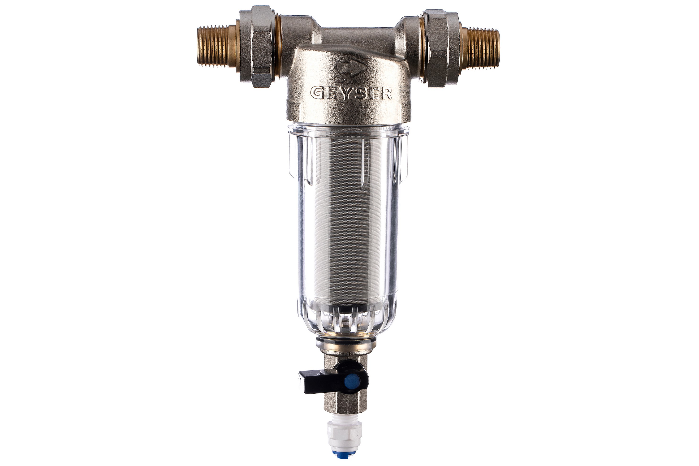 Фильтр самоочищающийся Гейзер-Бастион 111 1/2" (прозрачный корпус, со сгонами) (32666)