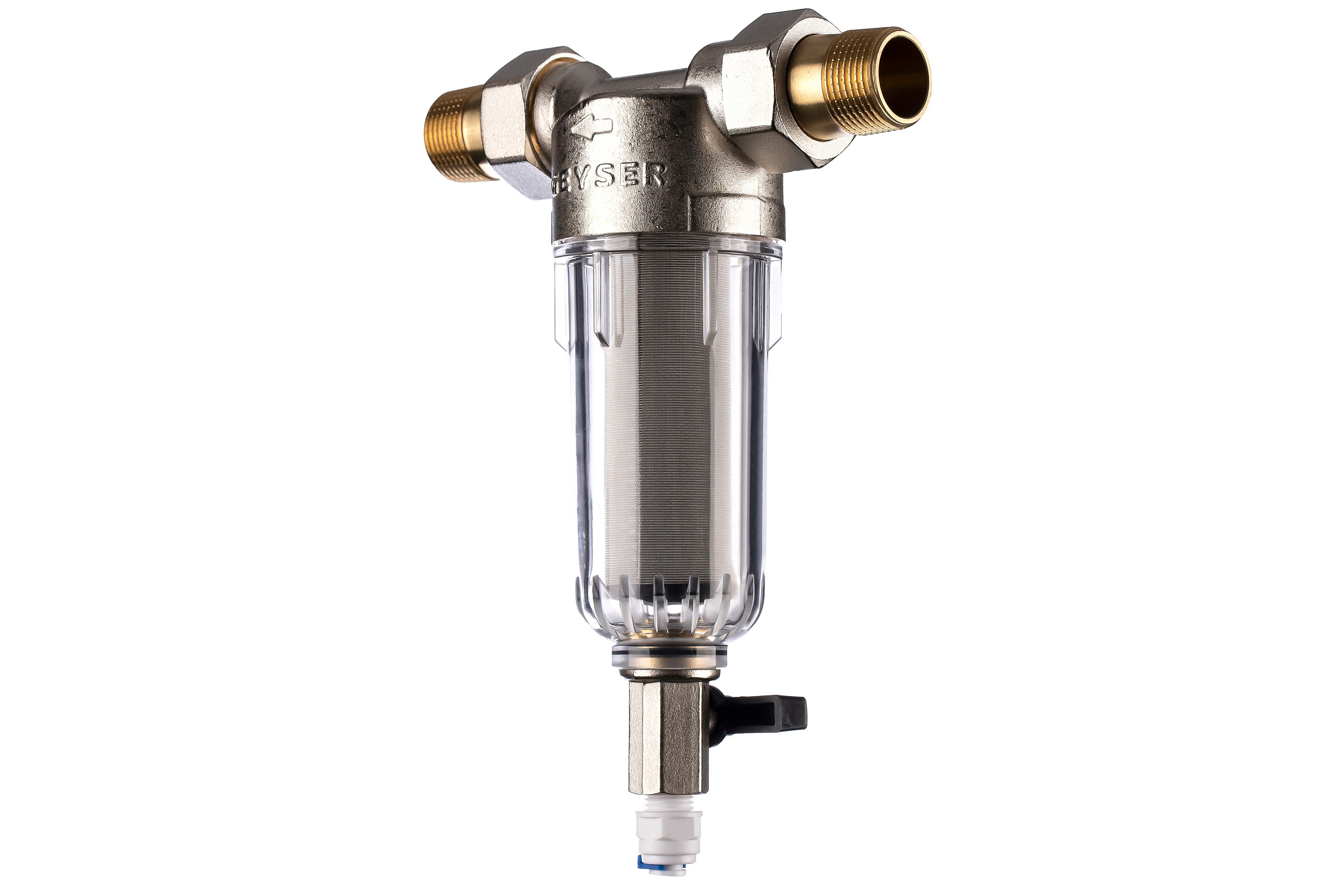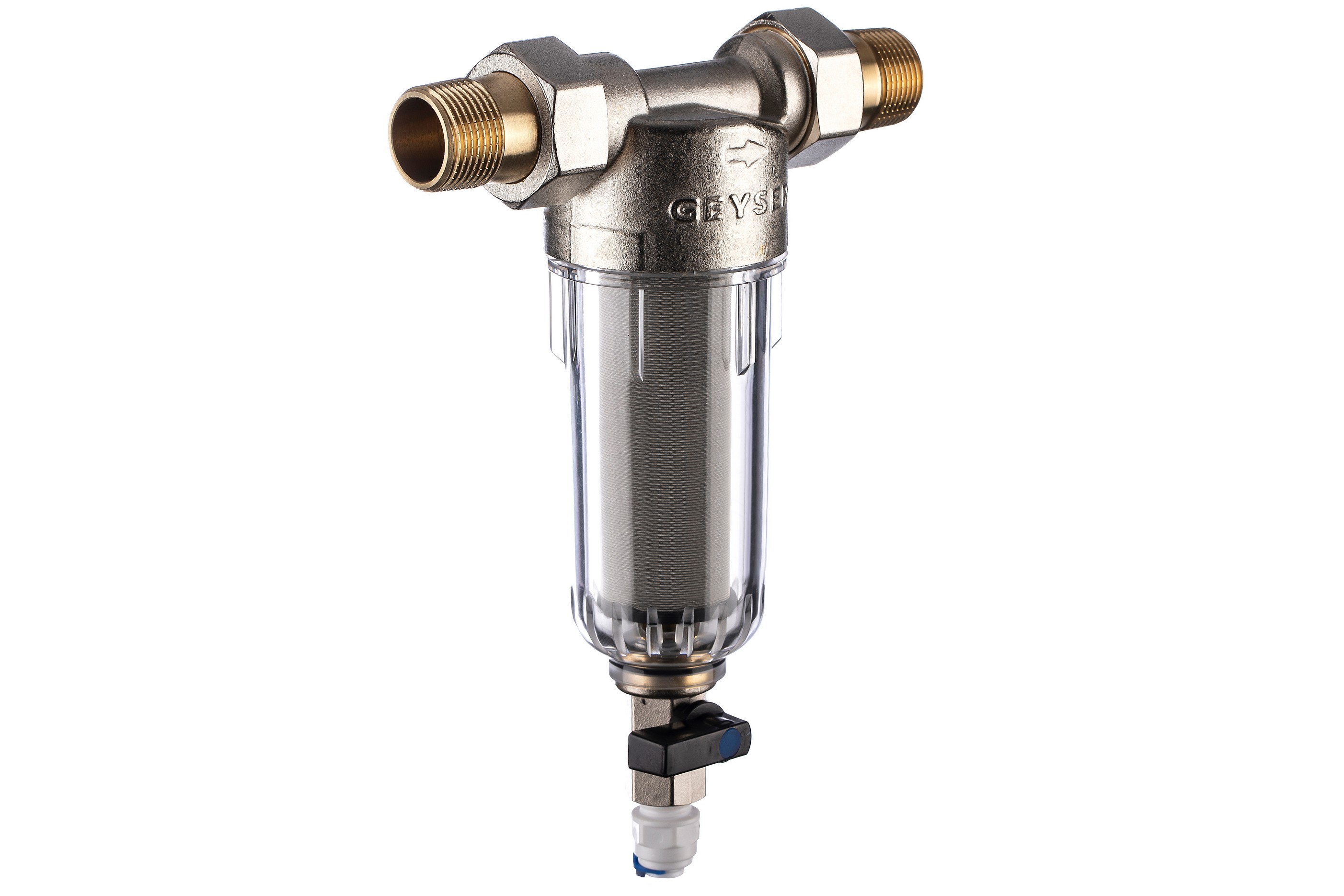 Компактный промывной фильтр механической очистки. Предназначен для первичной очистки холодной воды от механических примесей (ржавчина, песок, ил и другие нерастворимые примеси). Надежная защита сантехники и бытовой техники. Фильтрующий элемент – сетка из нержавеющей стали 90 мкм. Легко промывается. Замена фильтрующего элемента производится без демонтажа фильтра. Специальный кран в нижней части корпуса позволяет быстро и безопасно слить оставшуюся в фильтре воду и отфильтрованные загрязнения.