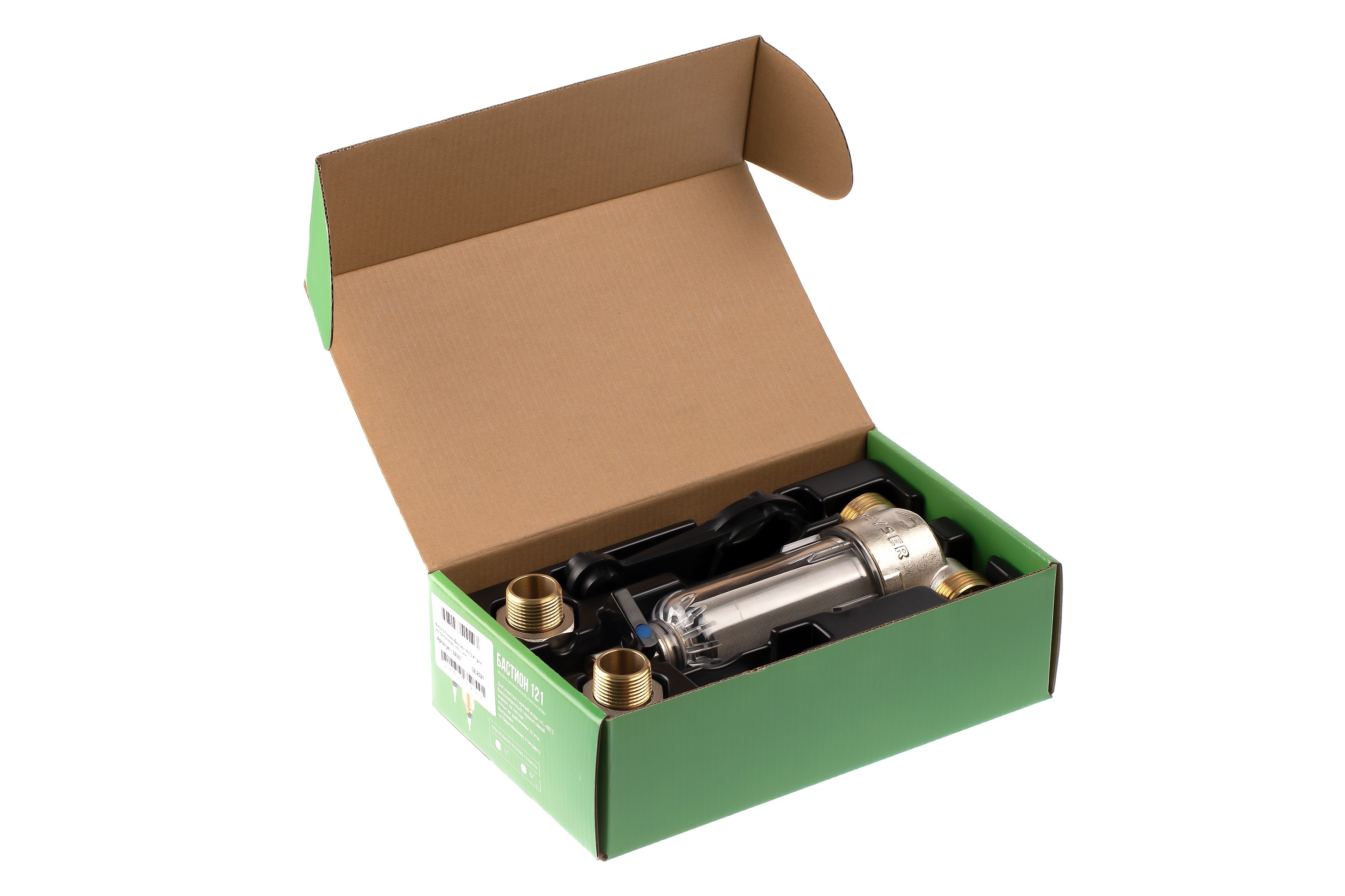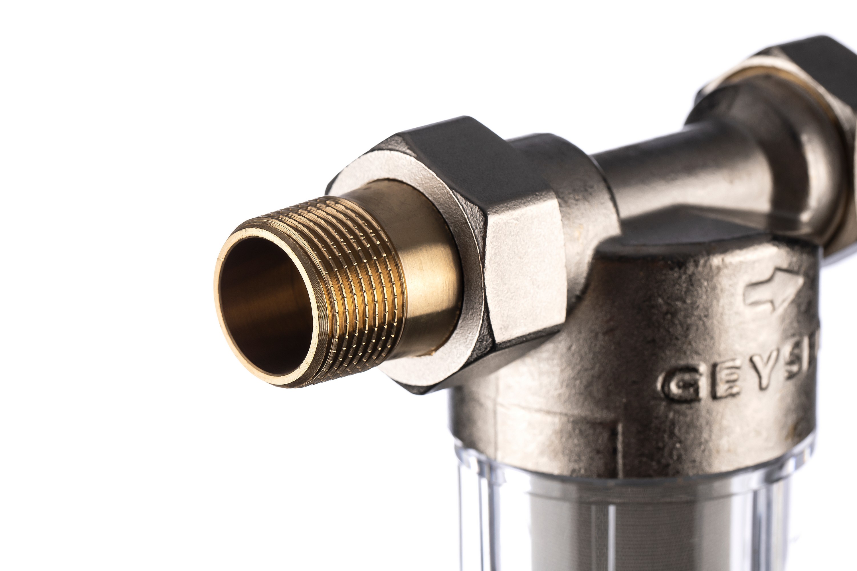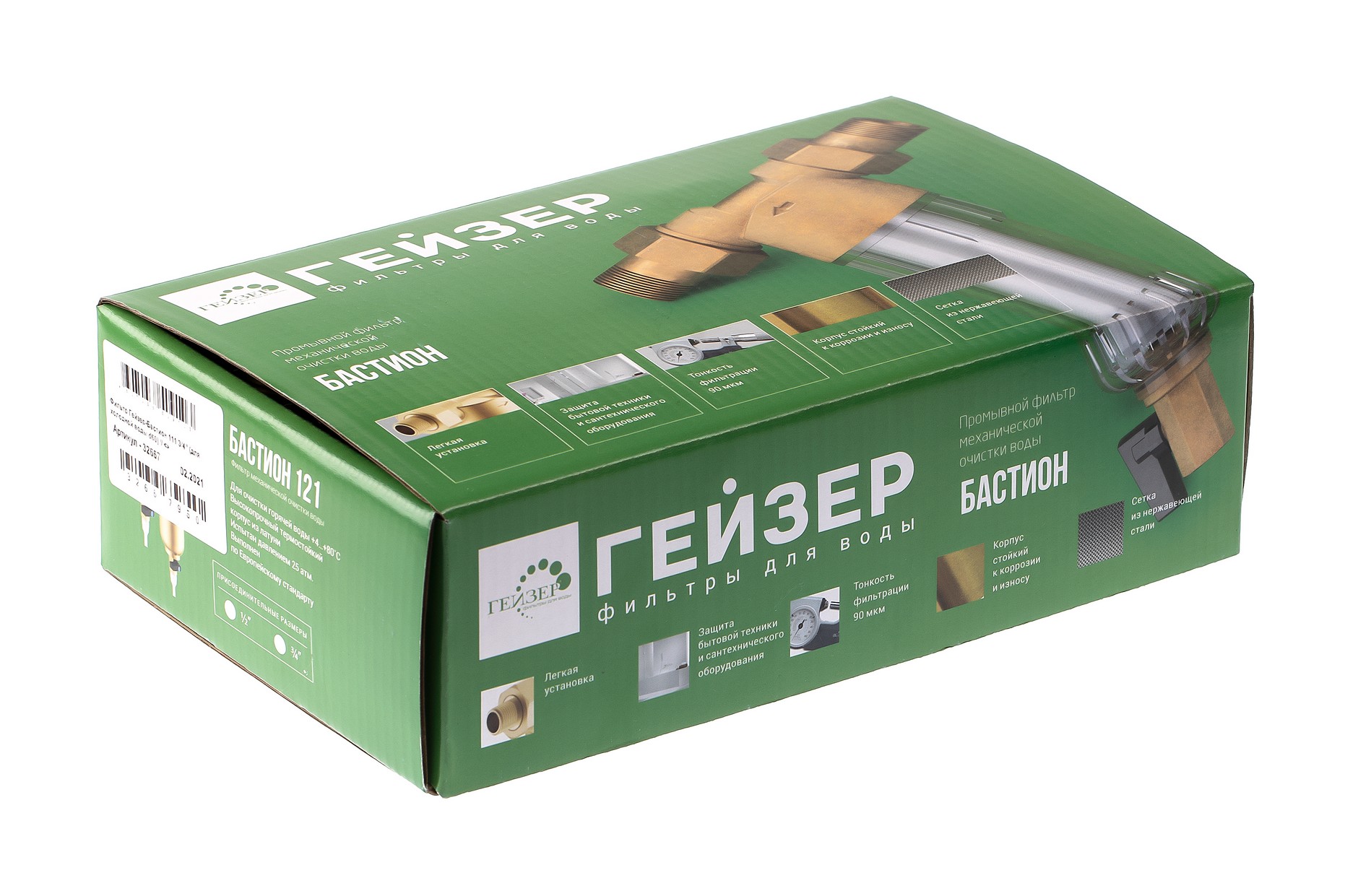 Фильтр самоочищающийся Гейзер-Бастион 111 3/4" (прозрачный корпус, со сгонами) (32667)