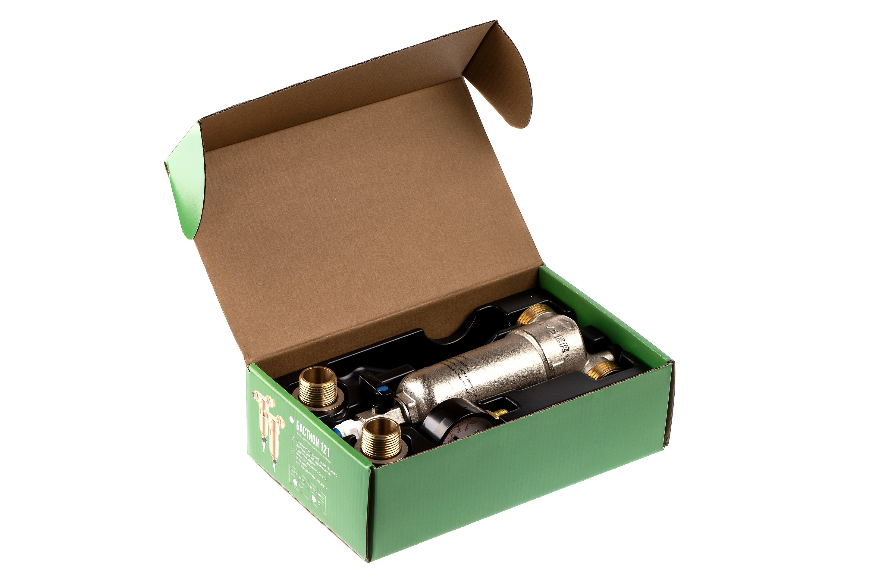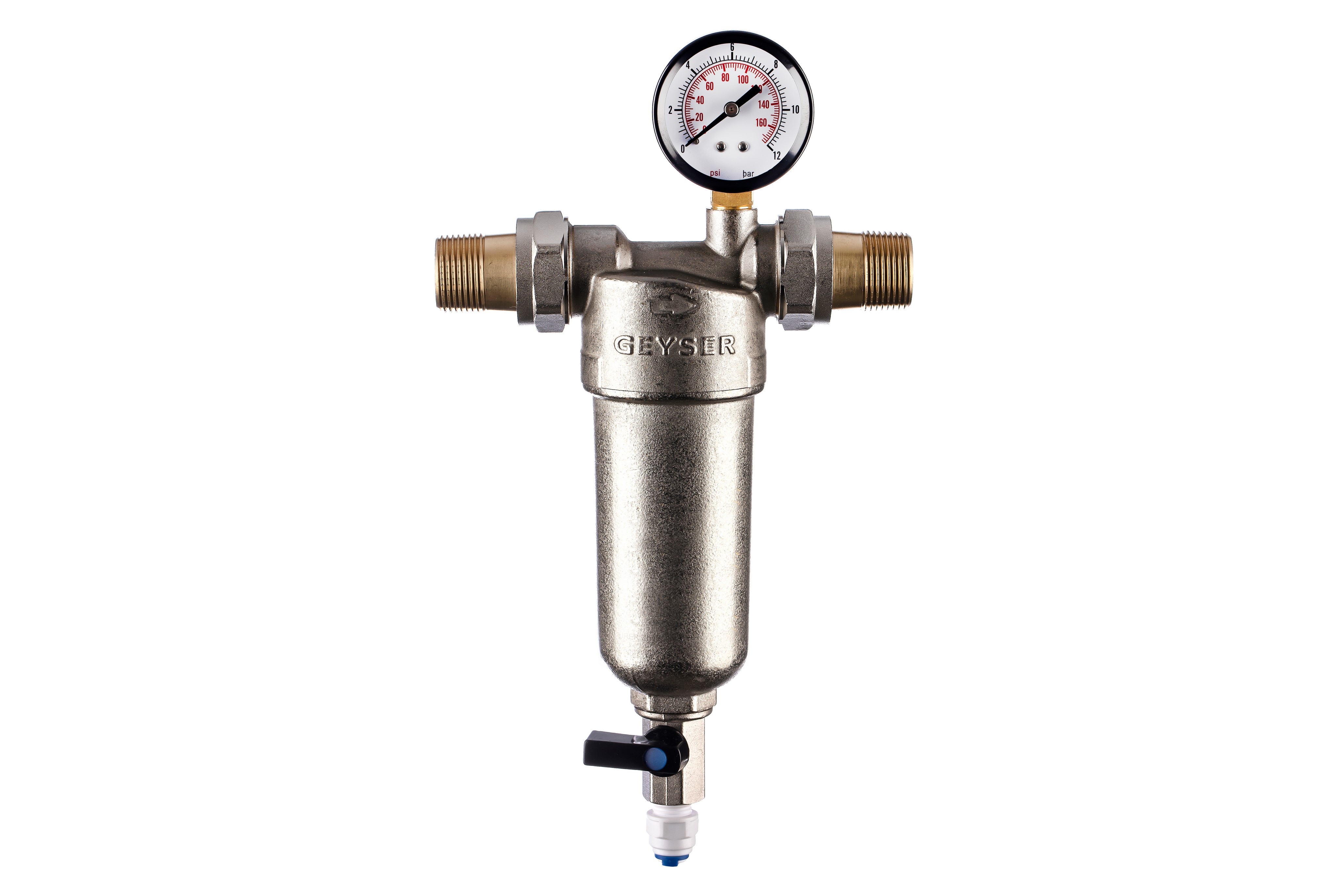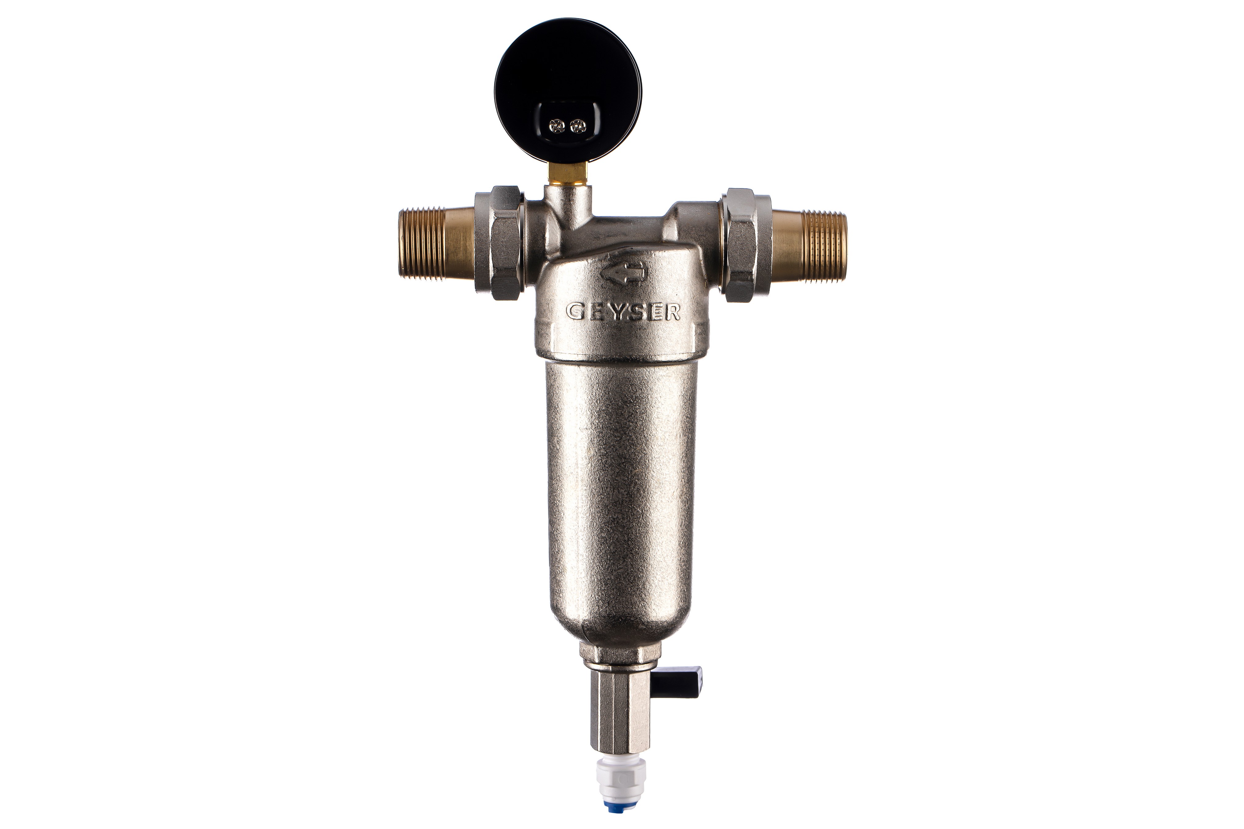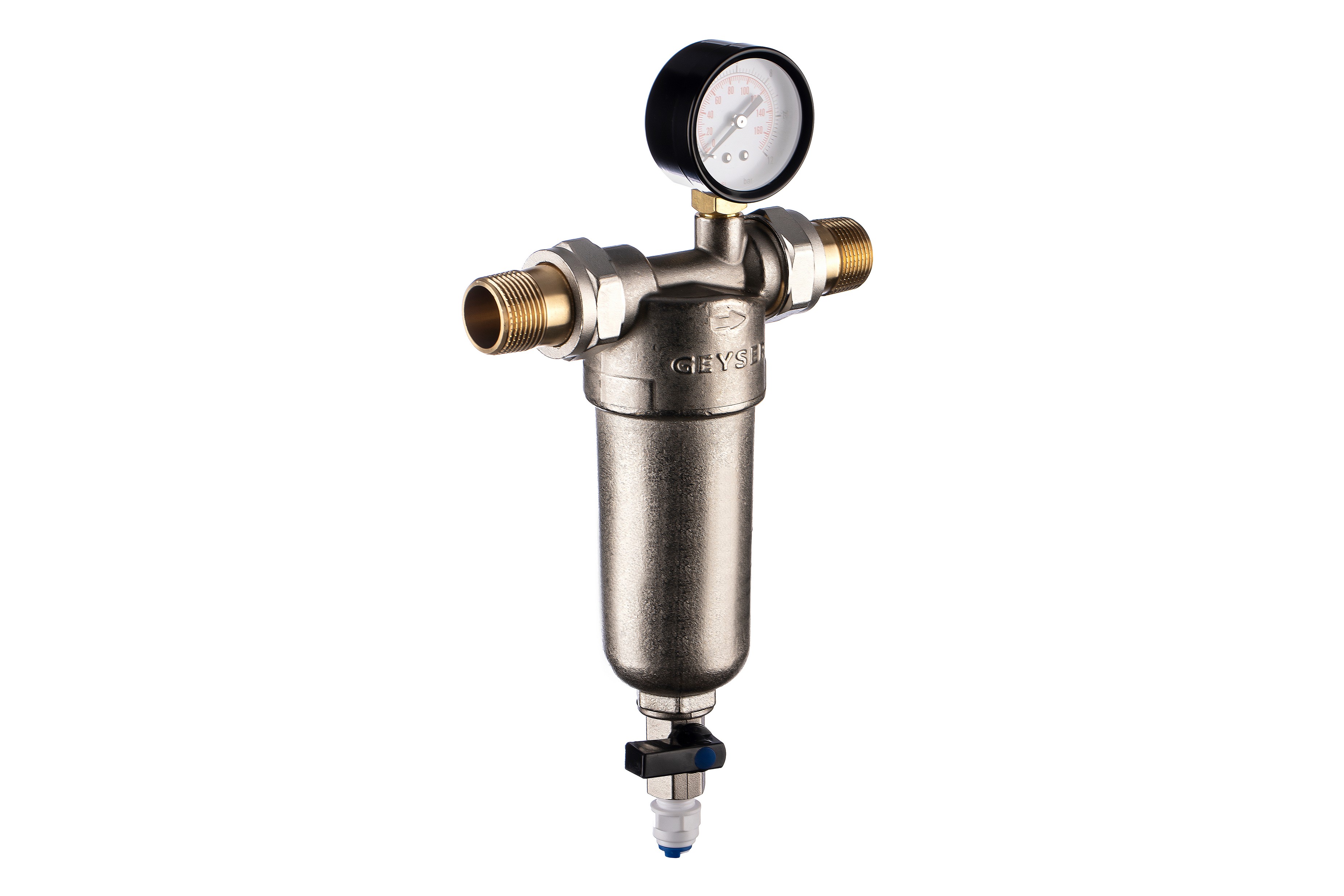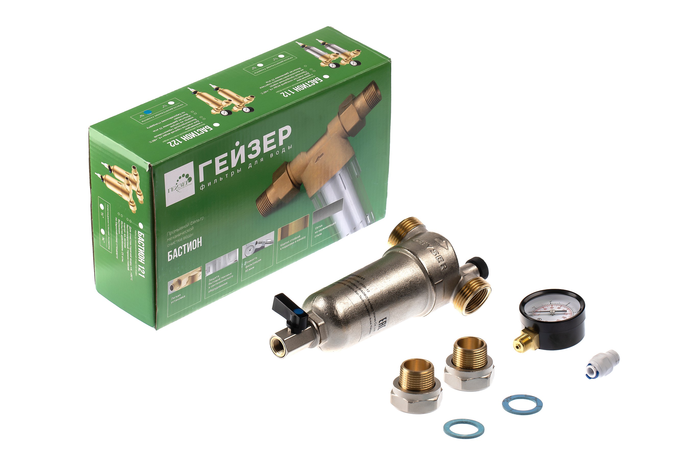 Фильтр с манометром самоочищающийся Гейзер-Бастион 122 3/4" (латунный корпус, со сгонами) (32673)
