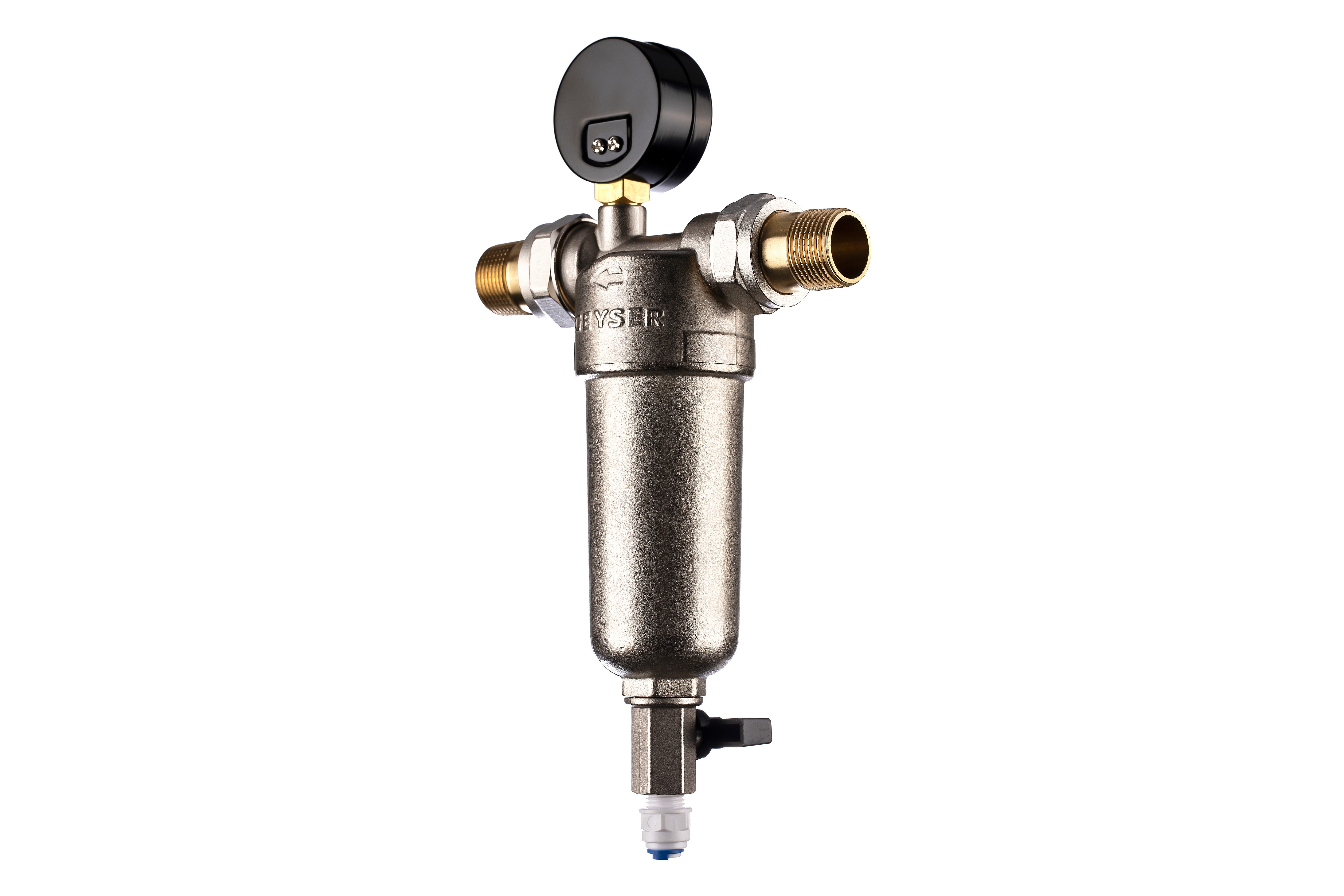Компактный промывной фильтр механической очистки. Предназначен для первичной очистки холодной и горячей воды от механических примесей (ржавчина, песок, ил и другие нерастворимые примеси). Надежная защита сантехники и бытовой техники. Фильтрующий элемент – сетка из нержавеющей стали 90 мкм. Легко промывается. Замена фильтрующего элемента производится без демонтажа фильтра. Специальный кран в нижней части корпуса позволяет быстро и безопасно слить оставшуюся в фильтре воду и отфильтрованные загрязнения.