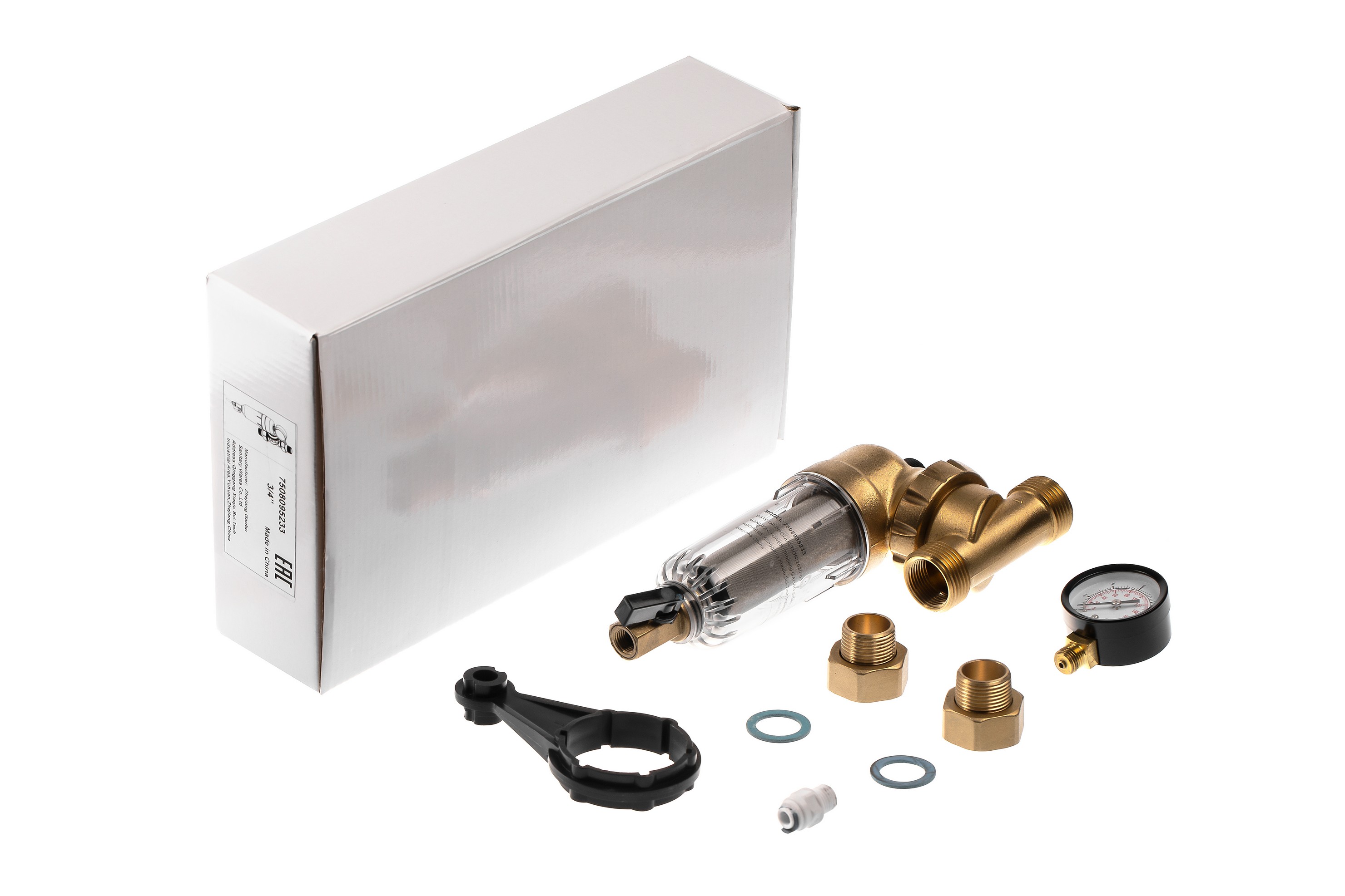 Фильтр самоочищающийся с редуктором Гейзер-Бастион 7508095233 3/4" (прозрачный корпус, со сгонами) (32678)