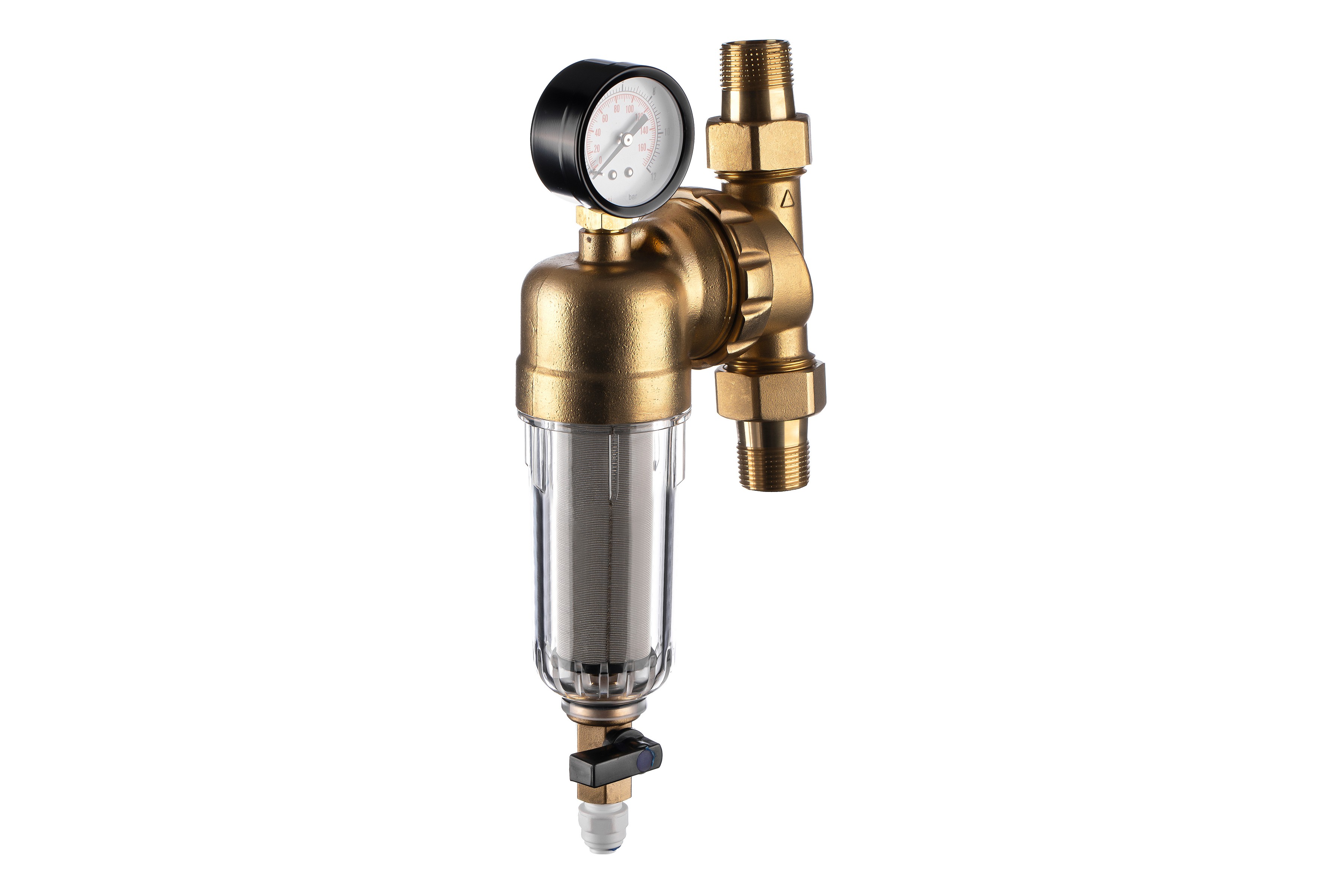 Компактный промывной фильтр механической очистки. Предназначен для первичной очистки холодной воды от механических примесей (ржавчина, песок, ил и другие нерастворимые примеси). Надежная защита сантехники и бытовой техники. Фильтрующий элемент – сетка из нержавеющей стали 90 мкм. Легко промывается. Замена фильтрующего элемента производится без демонтажа фильтра. Специальный кран в нижней части корпуса позволяет быстро и безопасно слить оставшуюся в фильтре воду и отфильтрованные загрязнения.