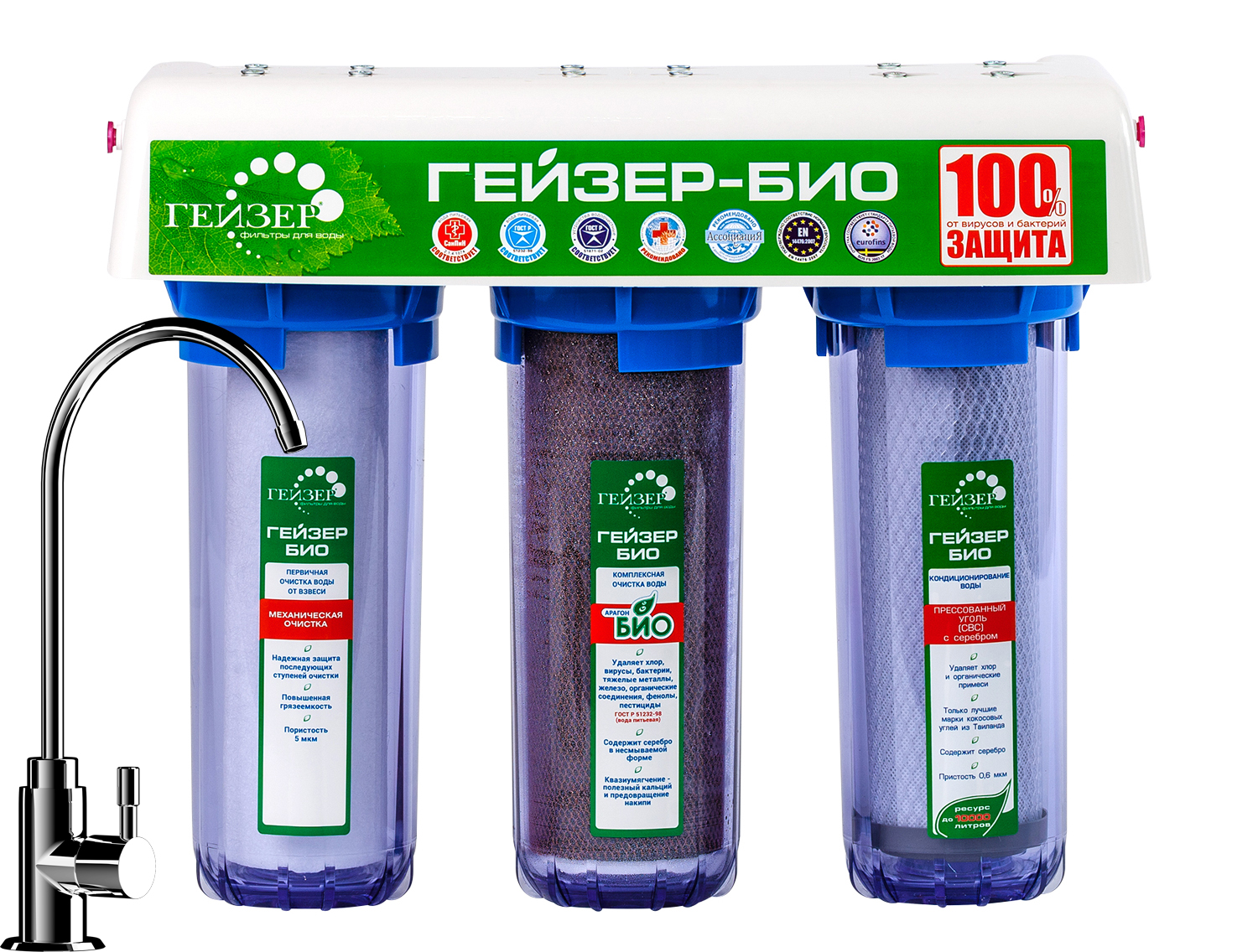 Фильтры серии Гейзер БИО — единственные на российском рынке фильтрующие системы, получившие сертификат соответствия.