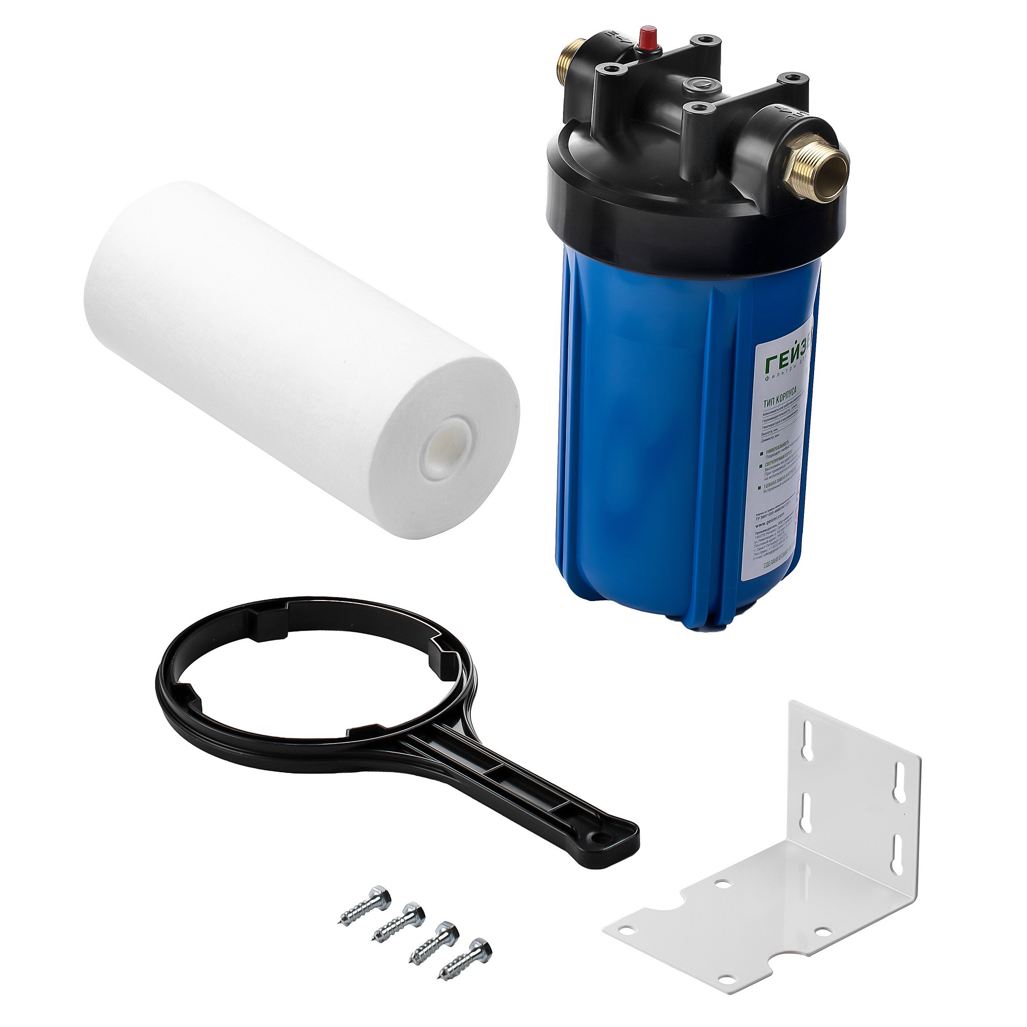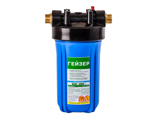 Фильтр колбовый Гейзер Джамбо 1" 10BB с латунными вставками (синий, для холодной воды) (32024)