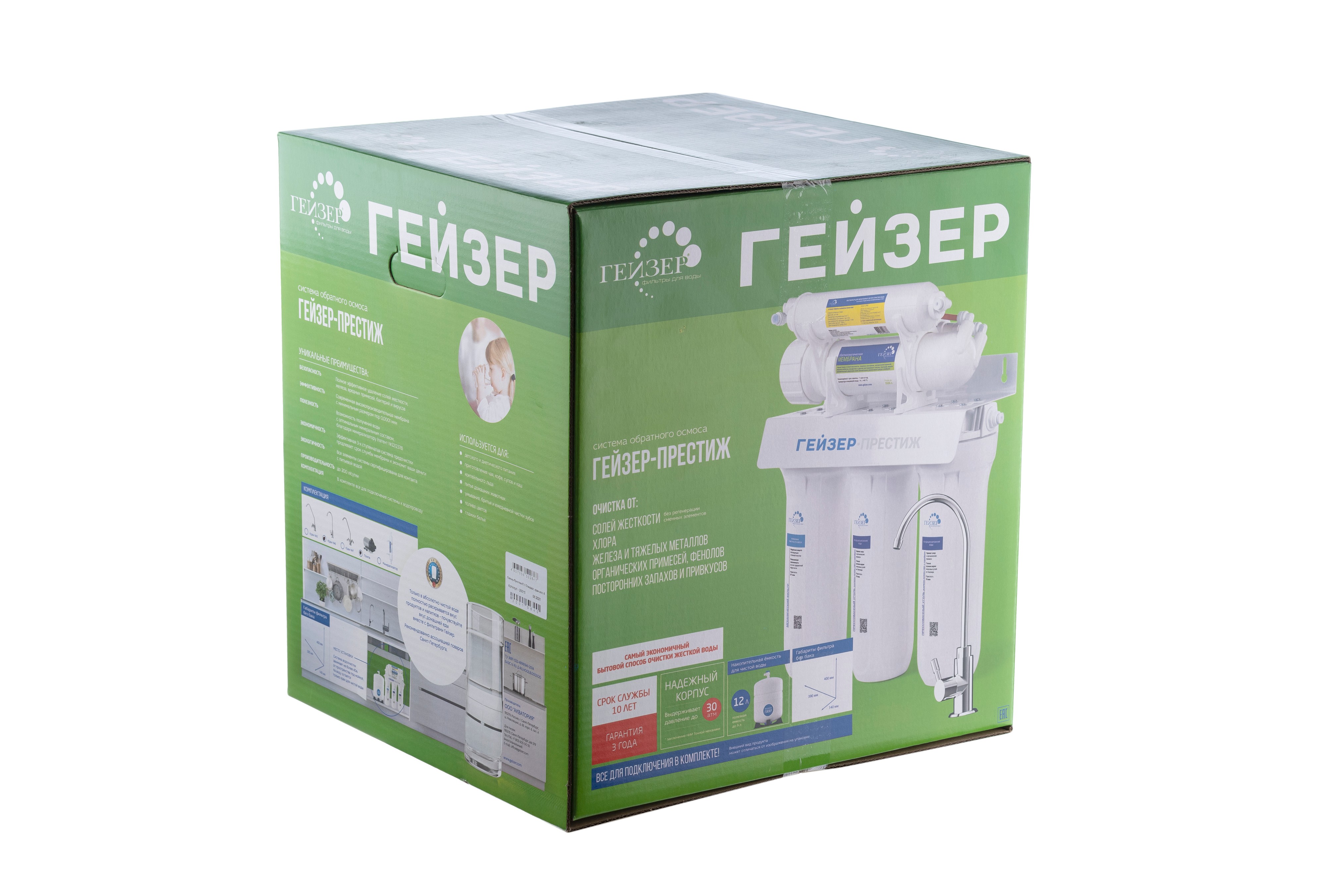 Вода, очищенная фильтром Гейзер Престиж П, близка по своим свойствам к талой воде древних ледников, которая признается наиболее экологически чистой и полезной для человека.