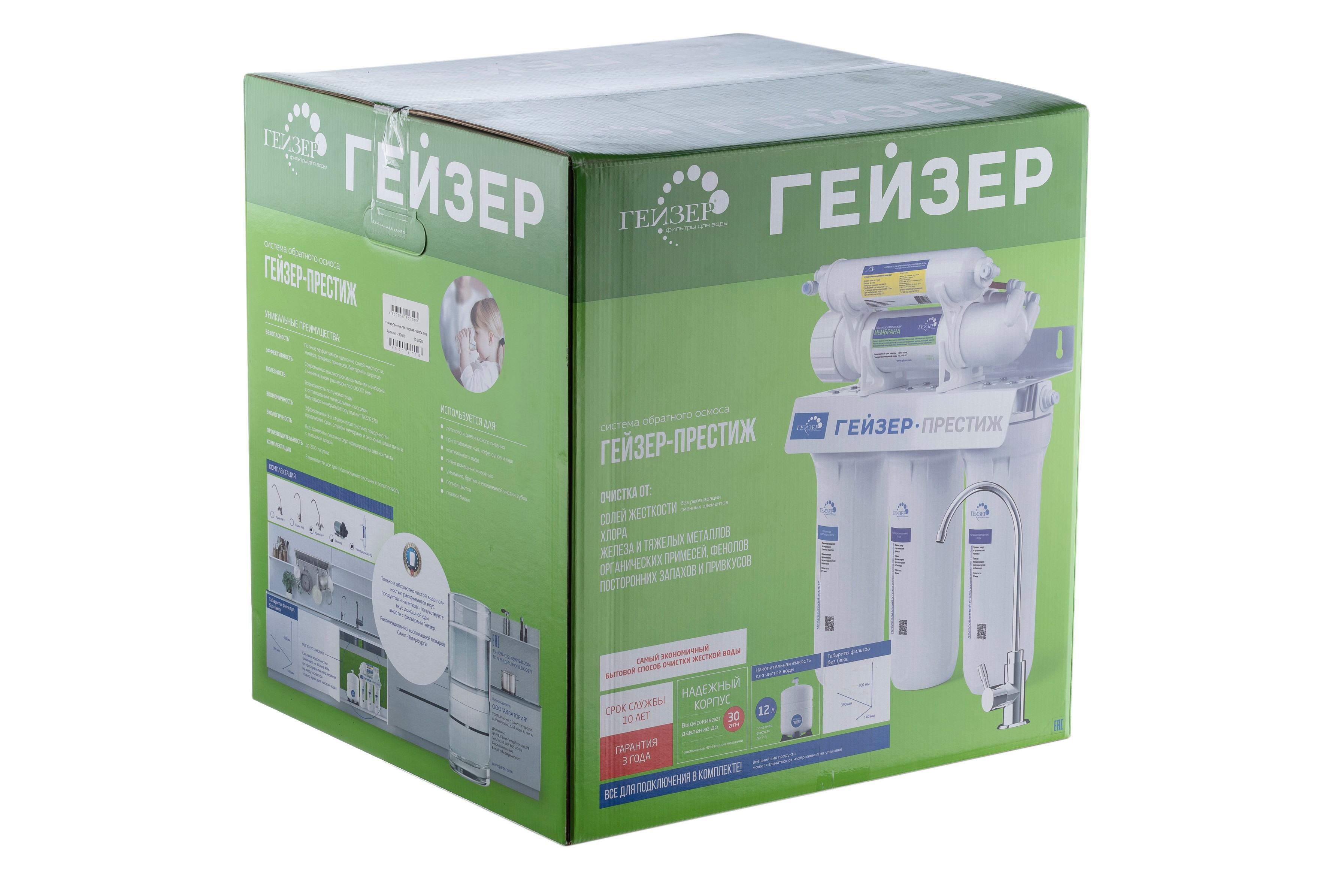 Технология обратного осмоса, использованная в фильтре Гейзер Престиж, заключается в фильтровании воды через полупроницаемую мембрану. Размеры пор мембраны настолько малы, что пропускают только молекулы воды. Размер молекул большинства примесей, а также бактерий и вирусов значительно больше молекул воды, поэтому они не проходят через мембрану. Фильтр Гейзер Престиж П работает при давлении в подводящей магистрали не менее 2 атм. Устройство повышения давления, входящее в комплект, повысит уровень давления до 3-6 атм.В комплект входит минерализатор «Вита» для насыщения очищенной воды полезными солями кальция и магния до оптимального уровня жесткости воды — 1,5–2 мг-экв/л. Кран с двумя вентилями обеспечивает подачу воды с минералами (если Вы хотите выпить стакан воды, обогащенной полезными микроэлементами) или без них (для приготовления чая, кофе). Вкус напитков, приготовленных на абсолютно чистой воде гораздо богаче и ароматнее.