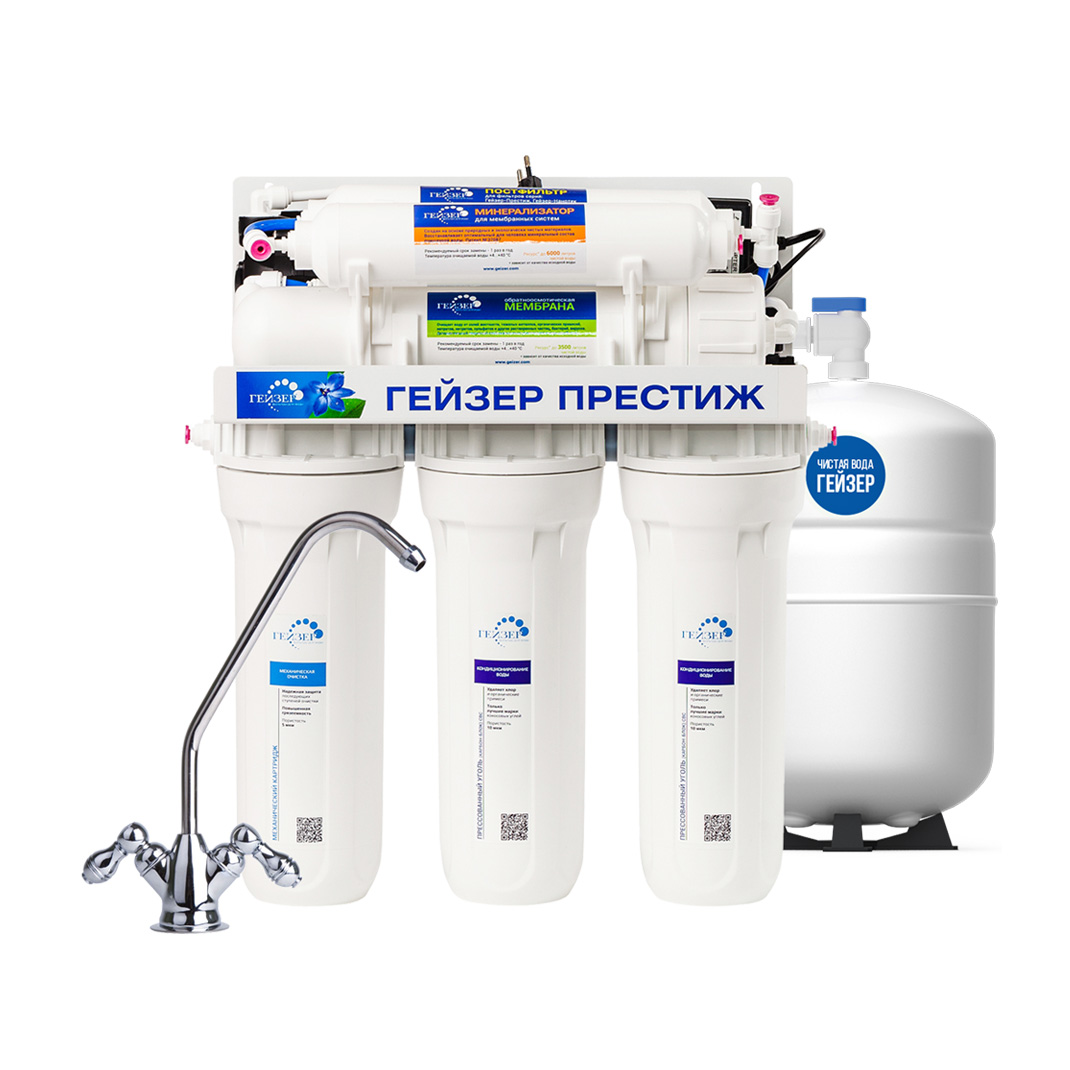 ЭТАПЫ ОЧИСТКИ ВОДЫ СИСТЕМОЙ ОБРАТНОГО ОСМОСА ГЕЙЗЕР ПРЕСТИЖ ПМ: