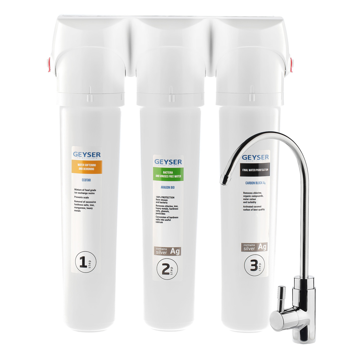 В фильтрах серии Гейзер Смарт реализованы основные методы очистки воды: механическая фильтрация, ионный обмен, сорбция, обезжелезивание и обеззараживание. Свойственный материалу Арагон эффект квазиумягчения позволяет получить не только идеально чистую и безопасную, но вкусную и полезную воду.