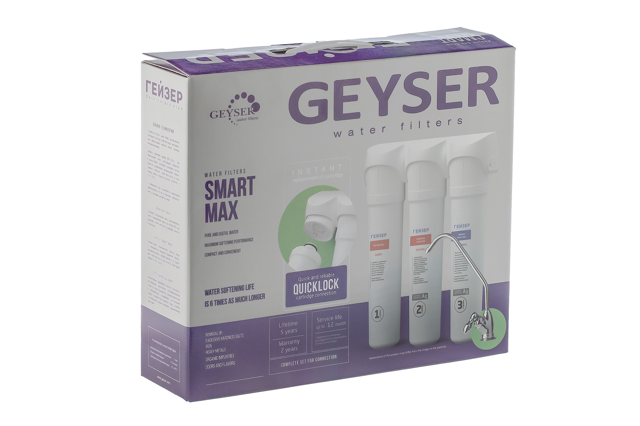 Компактная система Гейзер Смарт Макс предназначена для эффективного умягчения, снижения накипи и очистки жесткой воды. Благодаря использованию новейших инновационных фильтрующих материалов - картриджа Арагон Смарт Макс и специальной комбинации ионообменных смол АкваСофт — способность фильтра Гейзер Смарт Макс устранять накипь в 6 раз выше, чем у традиционных систем для умягчения воды! При этом фильтр не нуждается в периодическом обслуживании (регенерации).