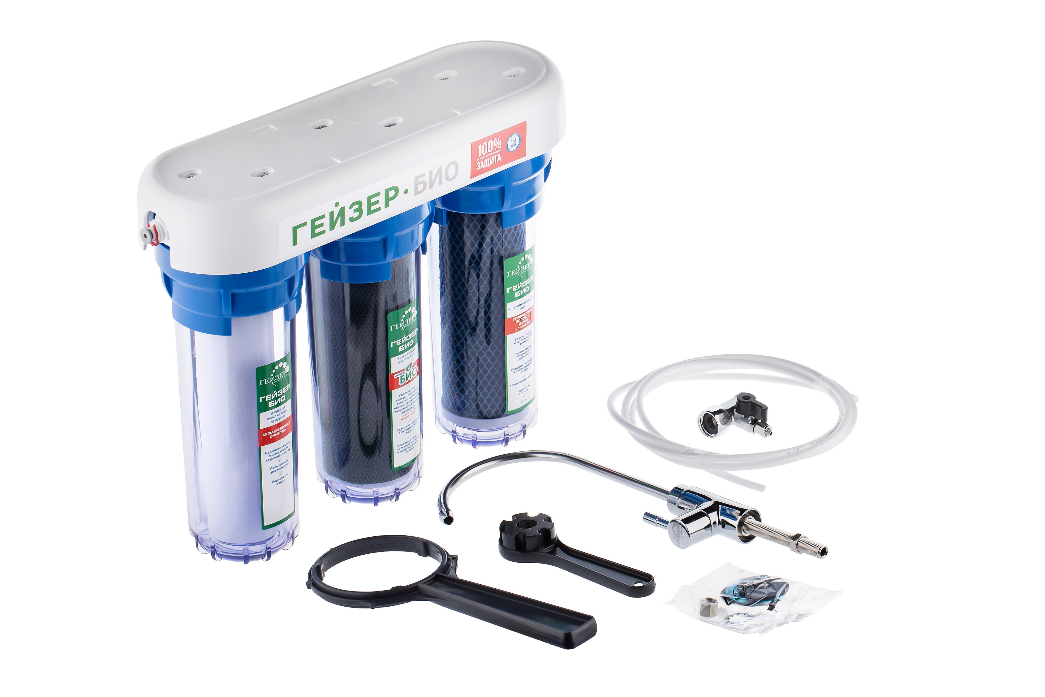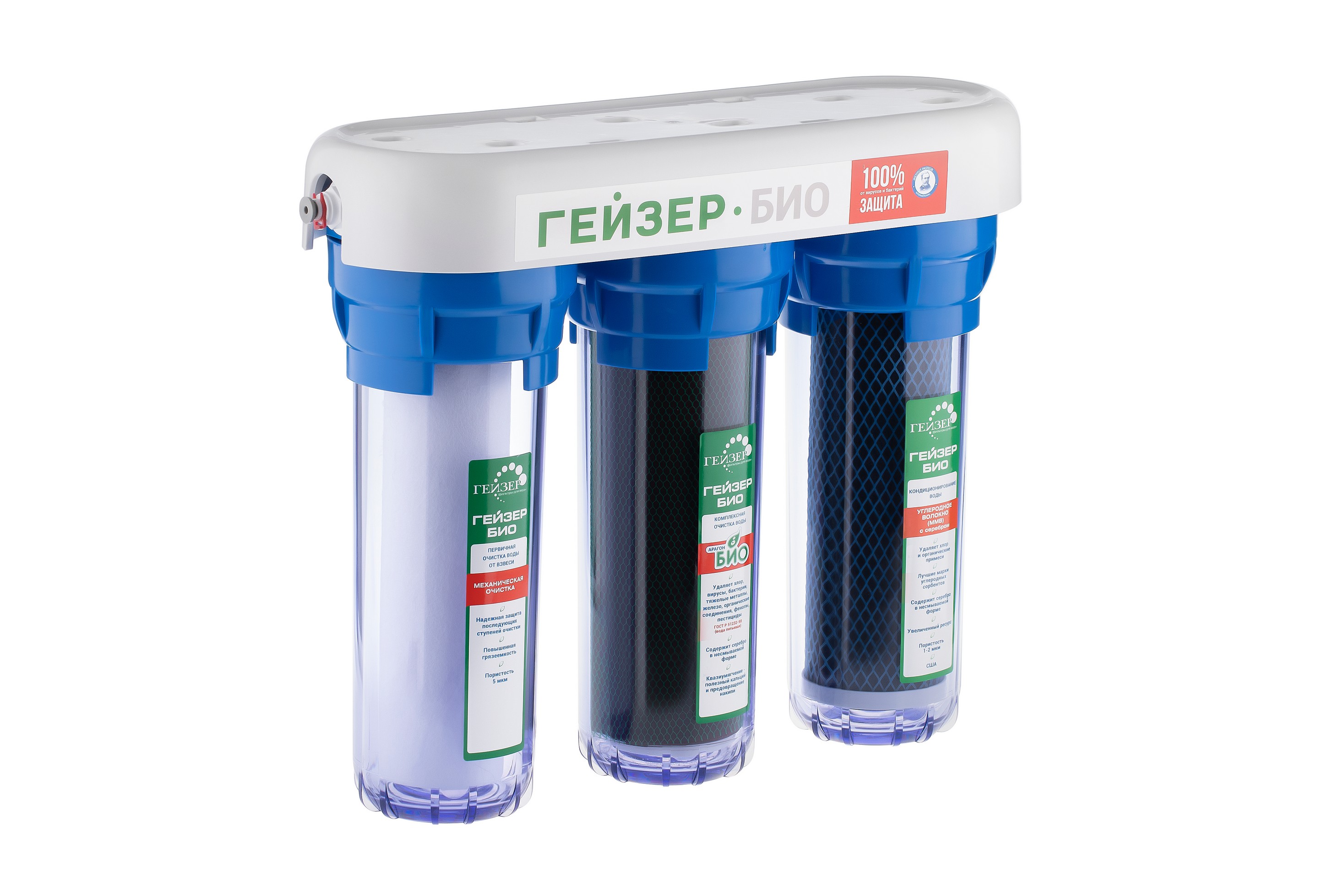 Фильтр Гейзер БИО для мягкой воды состоит из 3 картриджей: