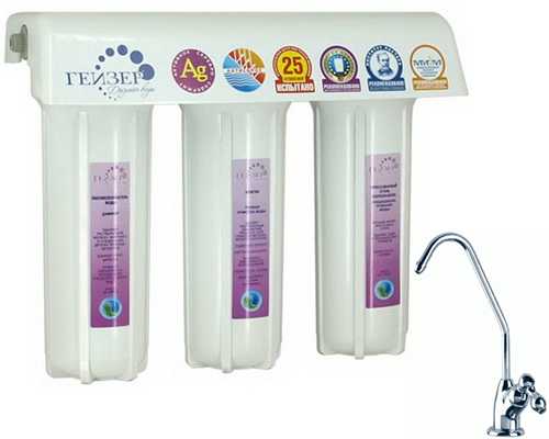 Механическая очистка 5 мкм. Картридж "Арагон М" из прессованного активированного угля СВС (карбон блок) с бактериостатической добавкой серебра. Возможность регенерации картриджа. Дозатор кальция.