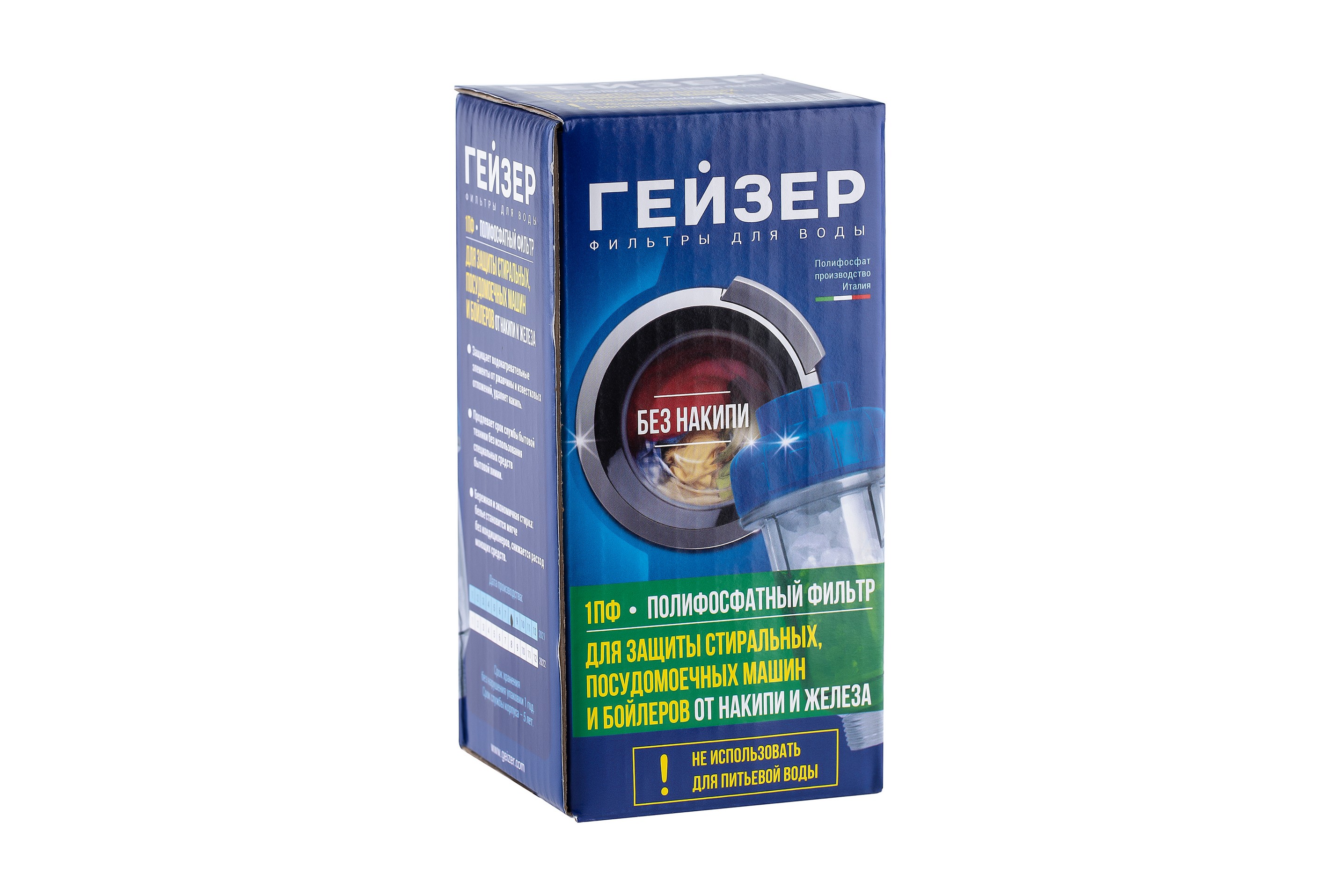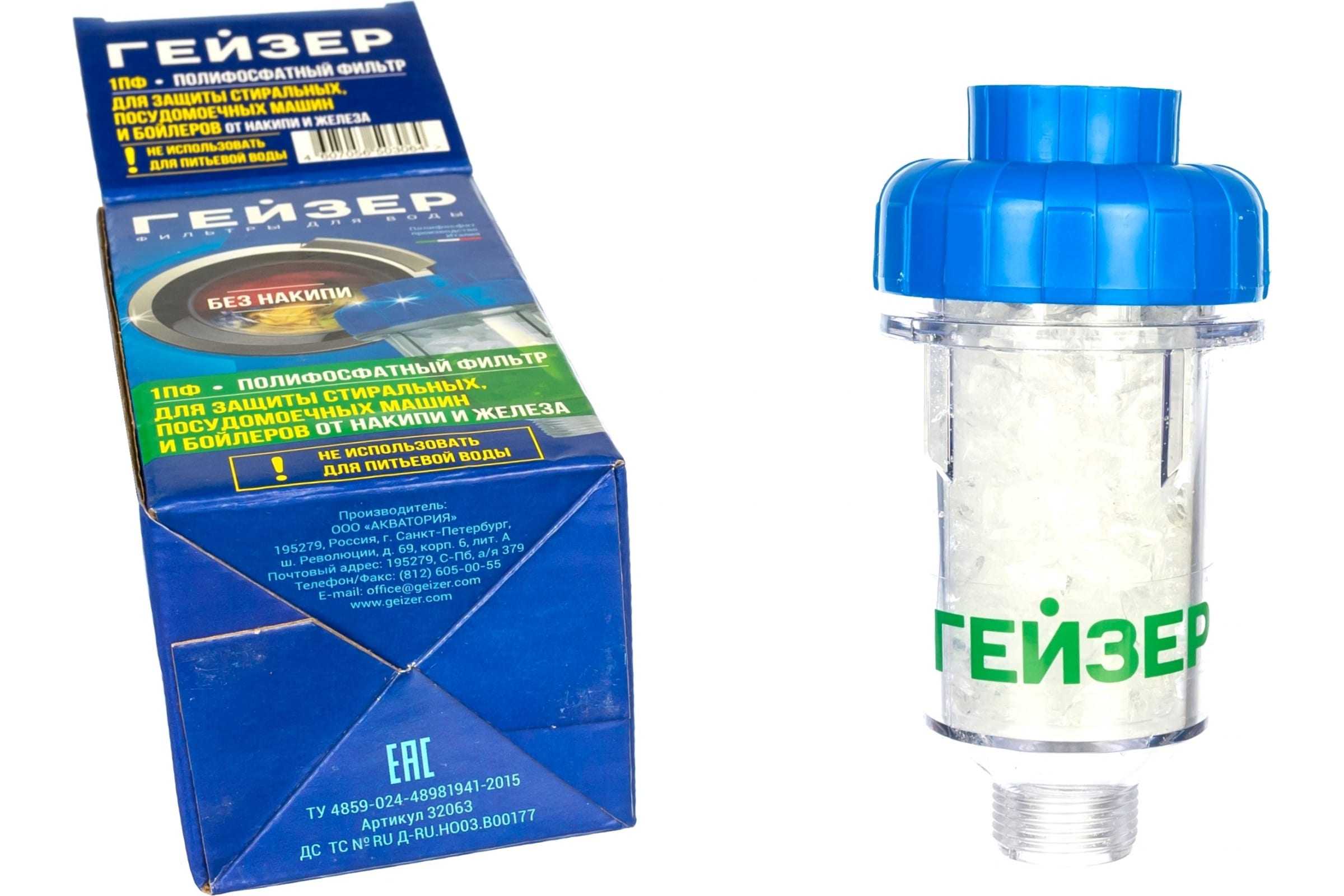 Фильтр Гейзер 1ПФ с полифосфатом используется для защиты нагревательных элементов стиральных, посудомоечных машин и водонагревателей от накипи. Применяется для воды, используемой в технических целях (можно мыть посуду, стирать белье, принимать душ). Фильтр Гейзер 1ПФ обеспечивает бережную стирку (белье становится мягче без применения специальных моющих средств). Фильтр изготовлен из прочного пластика и легко устанавливается на магистраль холодной воды. Прозрачный корпус позволяет контролировать работоспособность системы. При растворении полифосфата более чем на половину необходимо заменить наполнитель. Не использовать для питьевой воды!