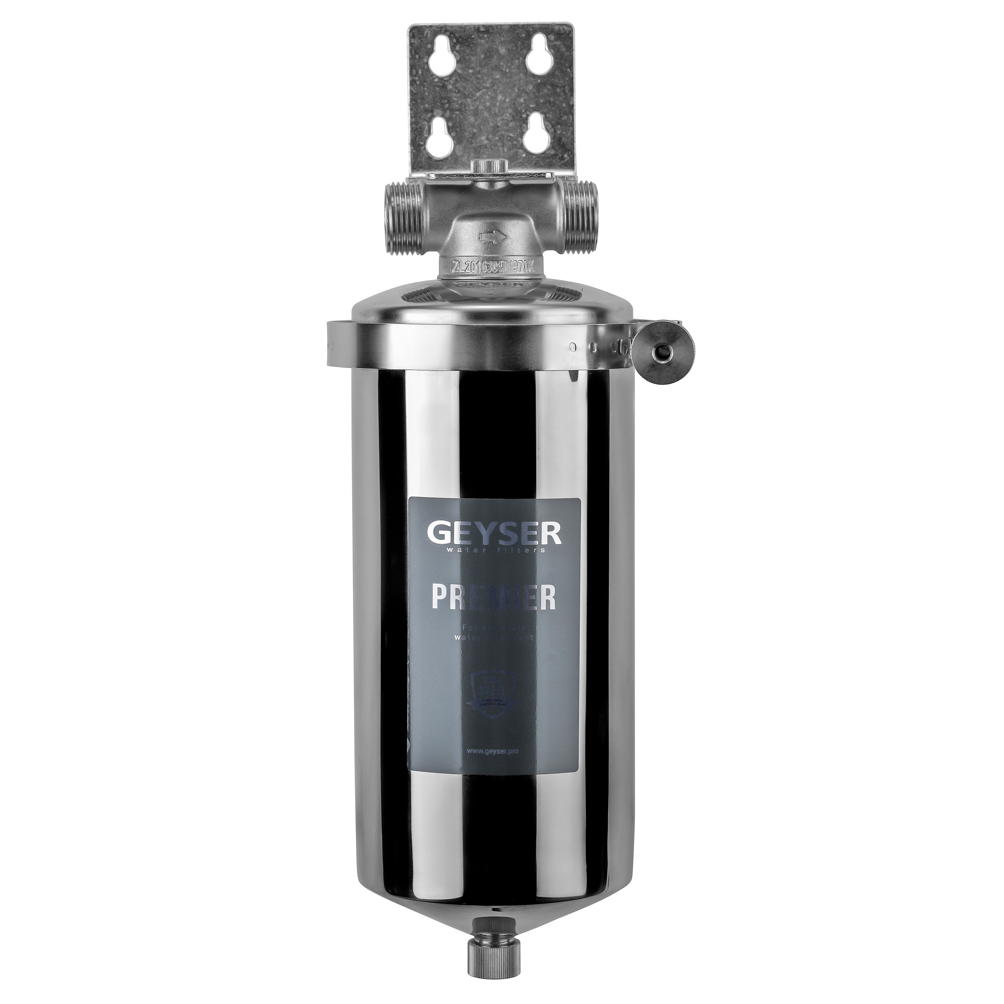 Фильтр колбовый Гейзер Премьер 1" 10BB со сливом (нержавеющая сталь, для холодной и горячей воды) (50754)