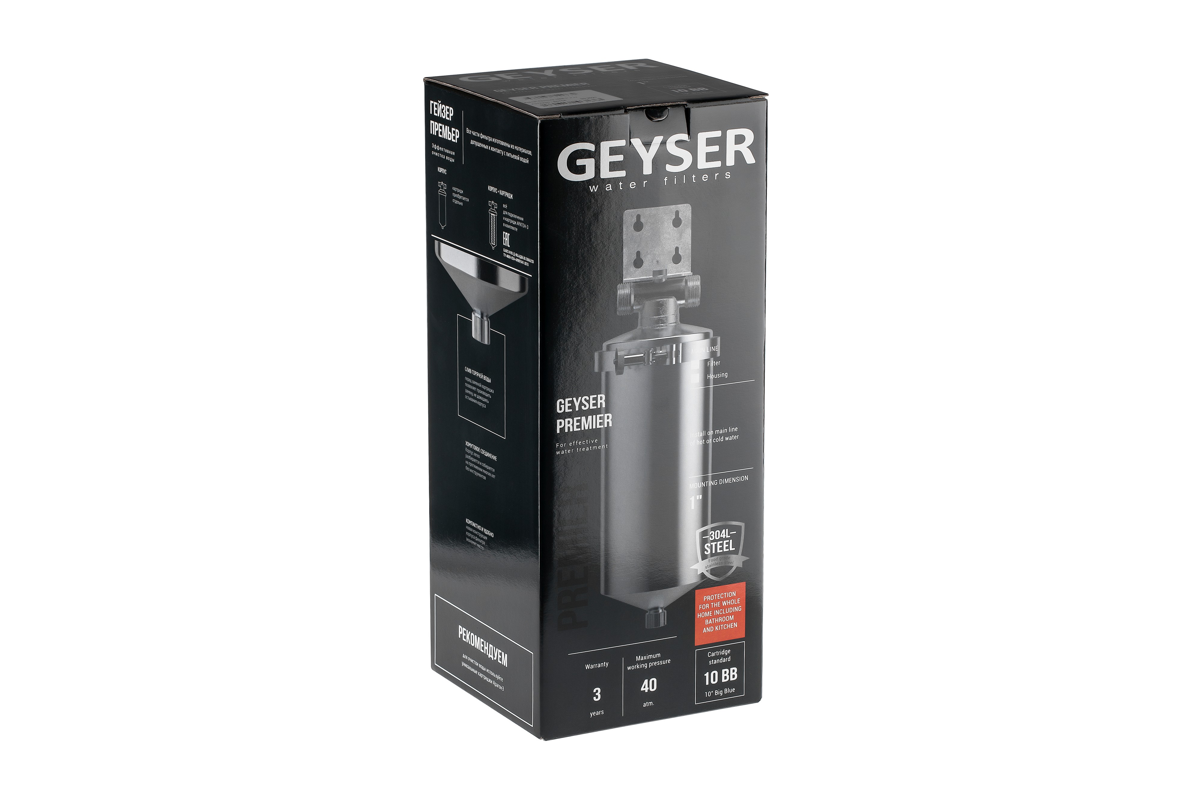 Гейзер-Премьер 10BB 1" устанавливается на вход в систему горячего или холодного водоснабжения. Корпус фильтра изготовлен из высококачественной нержавеющей стали марки 304L, устойчивой к возникновению коррозии, что гарантирует высокую надежность и многолетнюю работу фильтра.