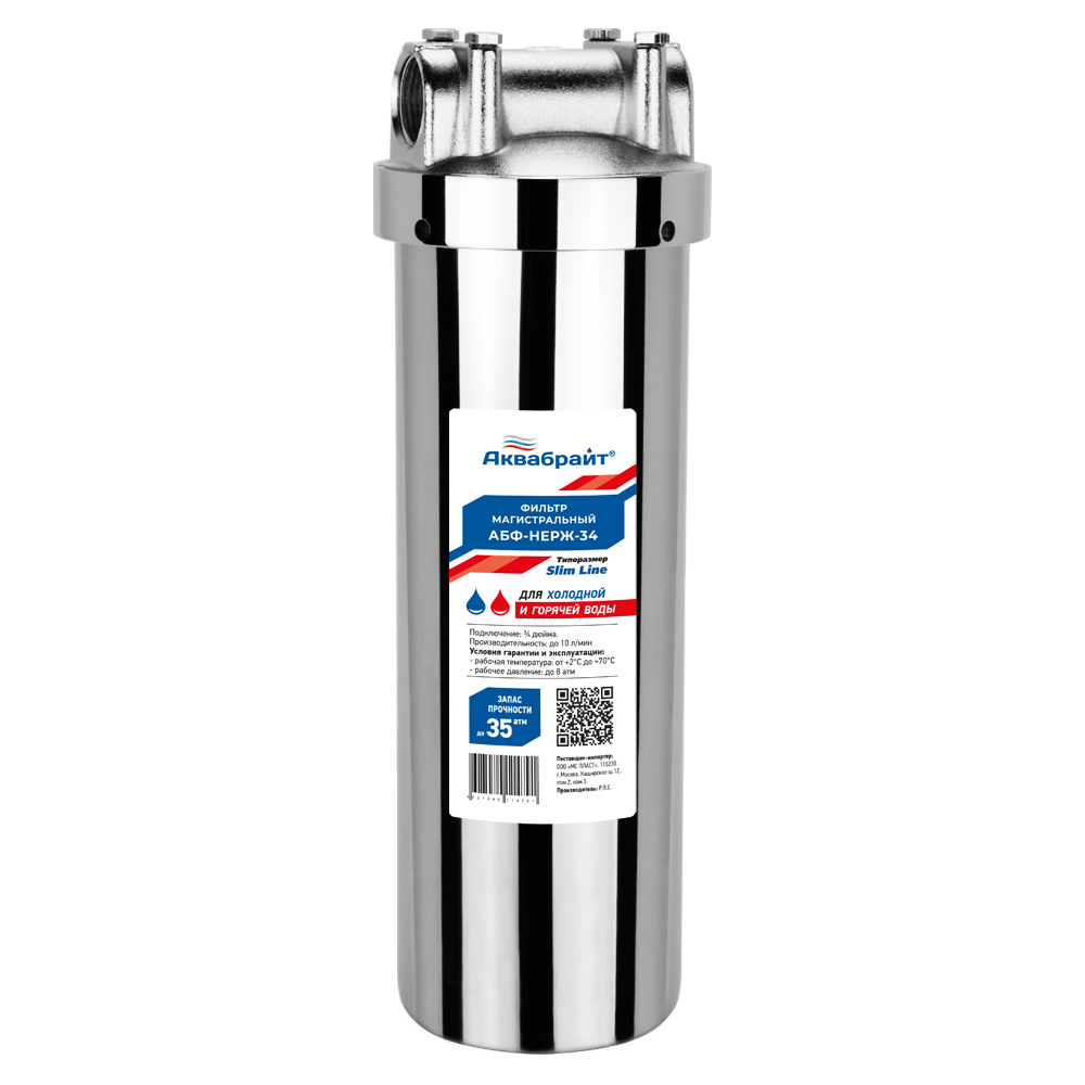 Фильтр колбовый Аквабрайт АБФ-НЕРЖ 1/2" 10SL (нержавеющая сталь, для холодной и горячей воды) (АБФ-НЕРЖ-12)