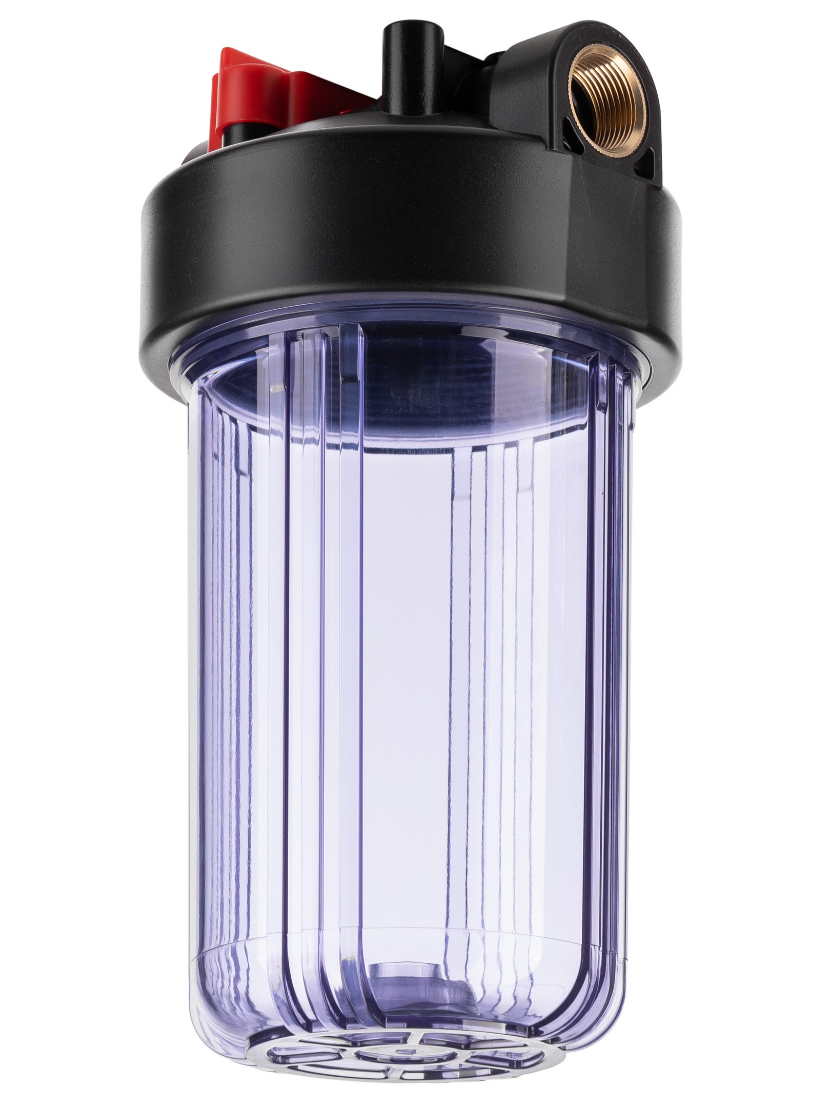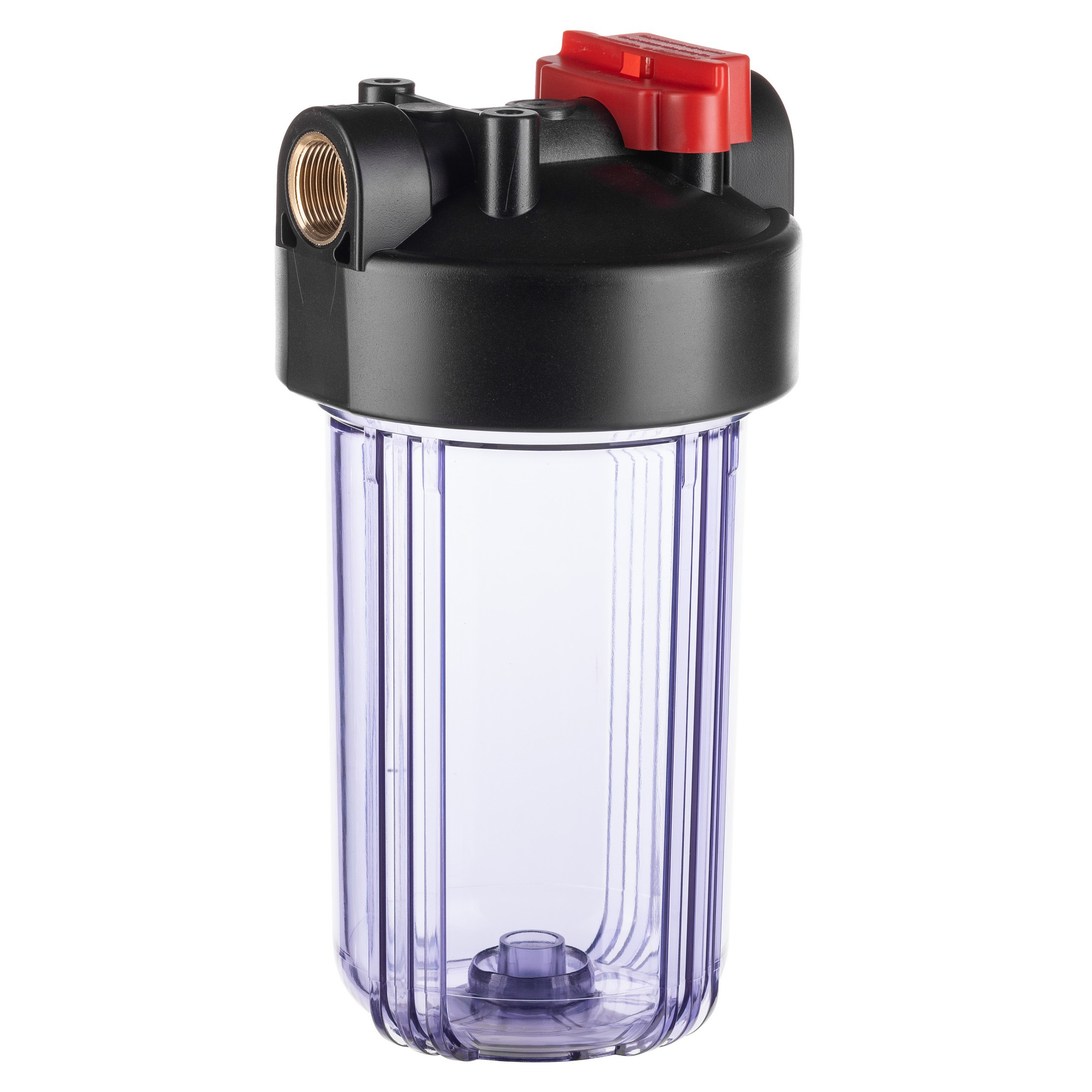 Фильтр колбовый Гейзер 1" 10BB с латунными вставками (клапан сброса давления, прозрачный, для холодной воды) (50781)