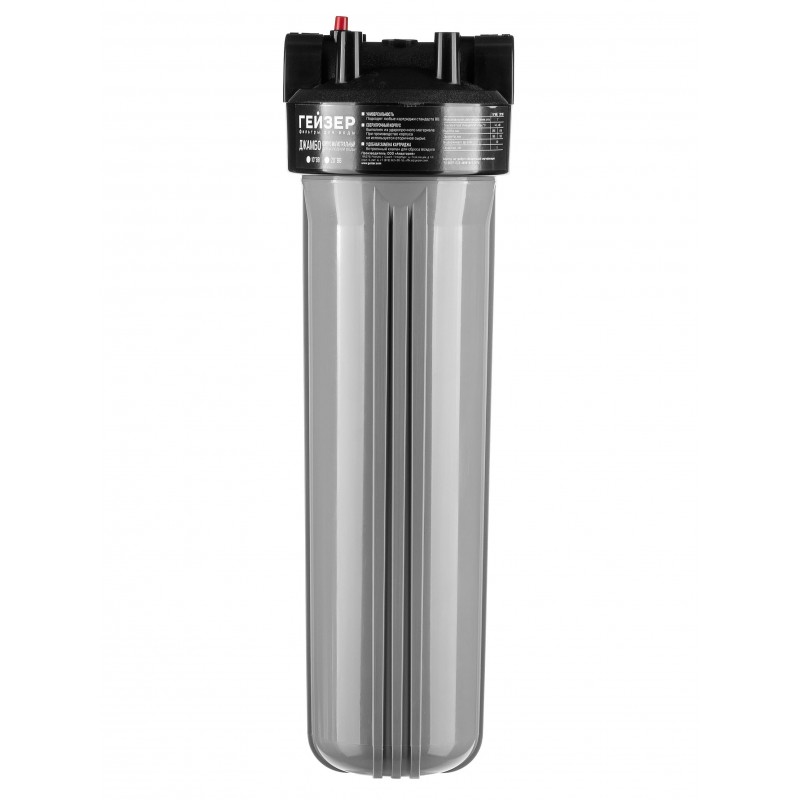 Корпус Гейзер Джамбо 20BB выполнен из сверхпрочного пластика, рассчитан на работу под давлением и установку на входе в систему холодного водоснабжения. Фильтр может применяться как отдельно, так и в составе комплексных систем водоочистки и водоподготовки.