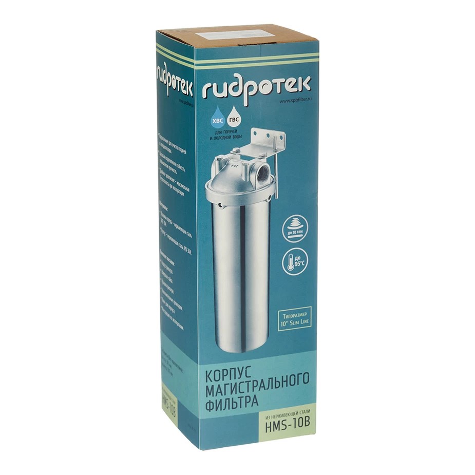 Корпус фильтра HMS-10B разработан для фильтрации горячей и холодной воды, как в бытовых, так и в промышленных условиях. Монтаж корпуса должен производиться уполномоченной, компетентной организацией (специалистом) с соблюдением СНиП, регламентирующих данный вид работ. Корпус магистрального фильтра HMS-10B предназначен для использования с картриджами для очистки воды типоразмера 10SL.