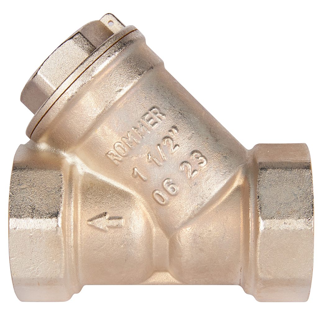 Фильтр сетчатый Rommer 1 1/2"" никелированный. Используется для удаления механических примесей из потока в трубопроводных системах различного назначения. Может использоваться с различными средами, такими как сжатый воздух, нефтепродукты, газы и жидкости, которые не агрессивны к материалам фильтра.