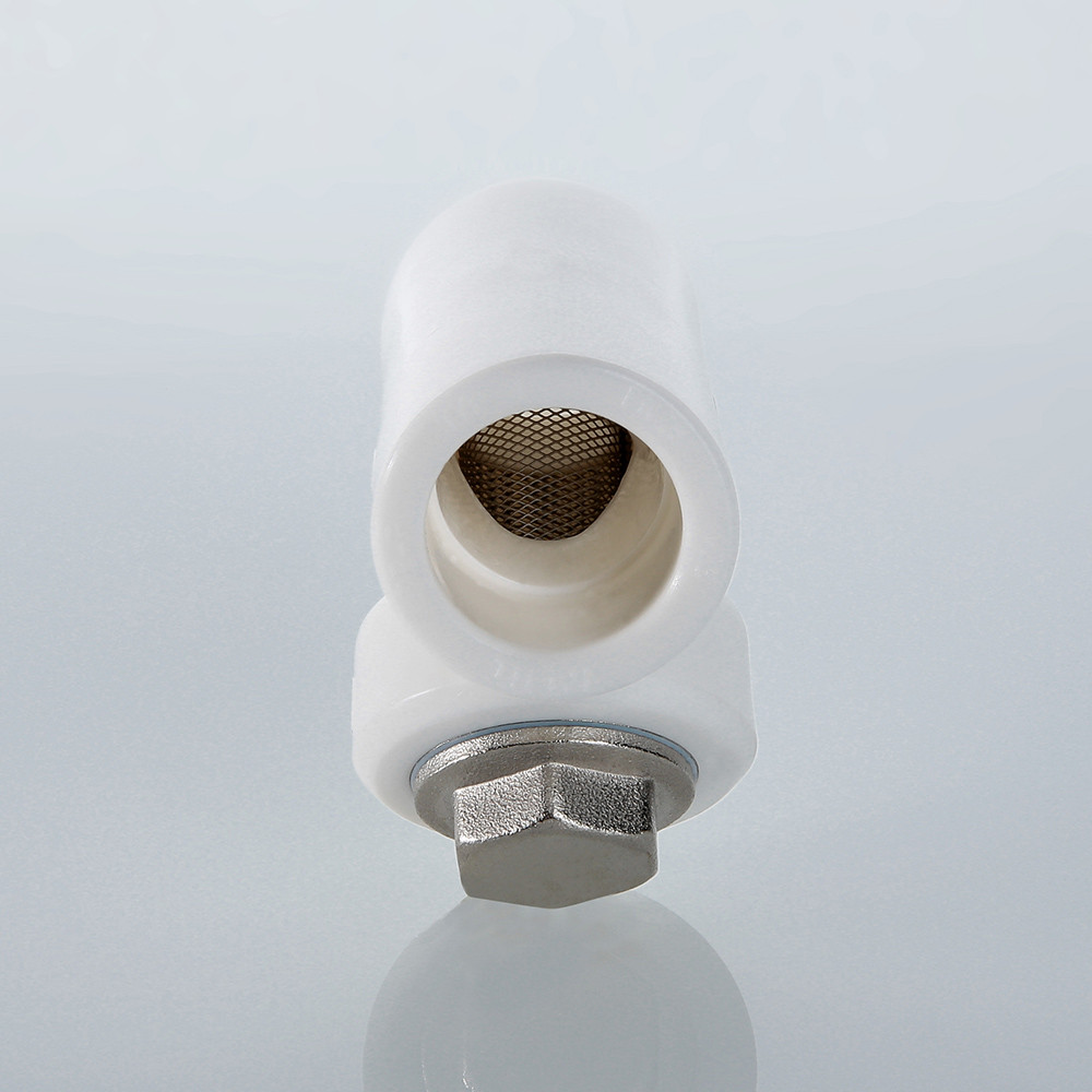Фильтр с корпусом из полипропилена и сетчатым элементом из нержавеющей стали марки AISI 304, предназначенный для очистки транспортируемой жидкости от нерастворимых примесей размером от 300 мкм. Используется в составе систем из полипропиленовых труб c рабочей температурой до 90 °С и при номинальном давлении (PN) 25 бар. Пробка и закладная деталь фильтра выполнены из латуни марки CW617N, никелированы, уплотнительная прокладка – из синтетического каучука EPDM. Монтаж фильтра производится методом раструбной сварки. Присоединения – внутреннее/наружное
