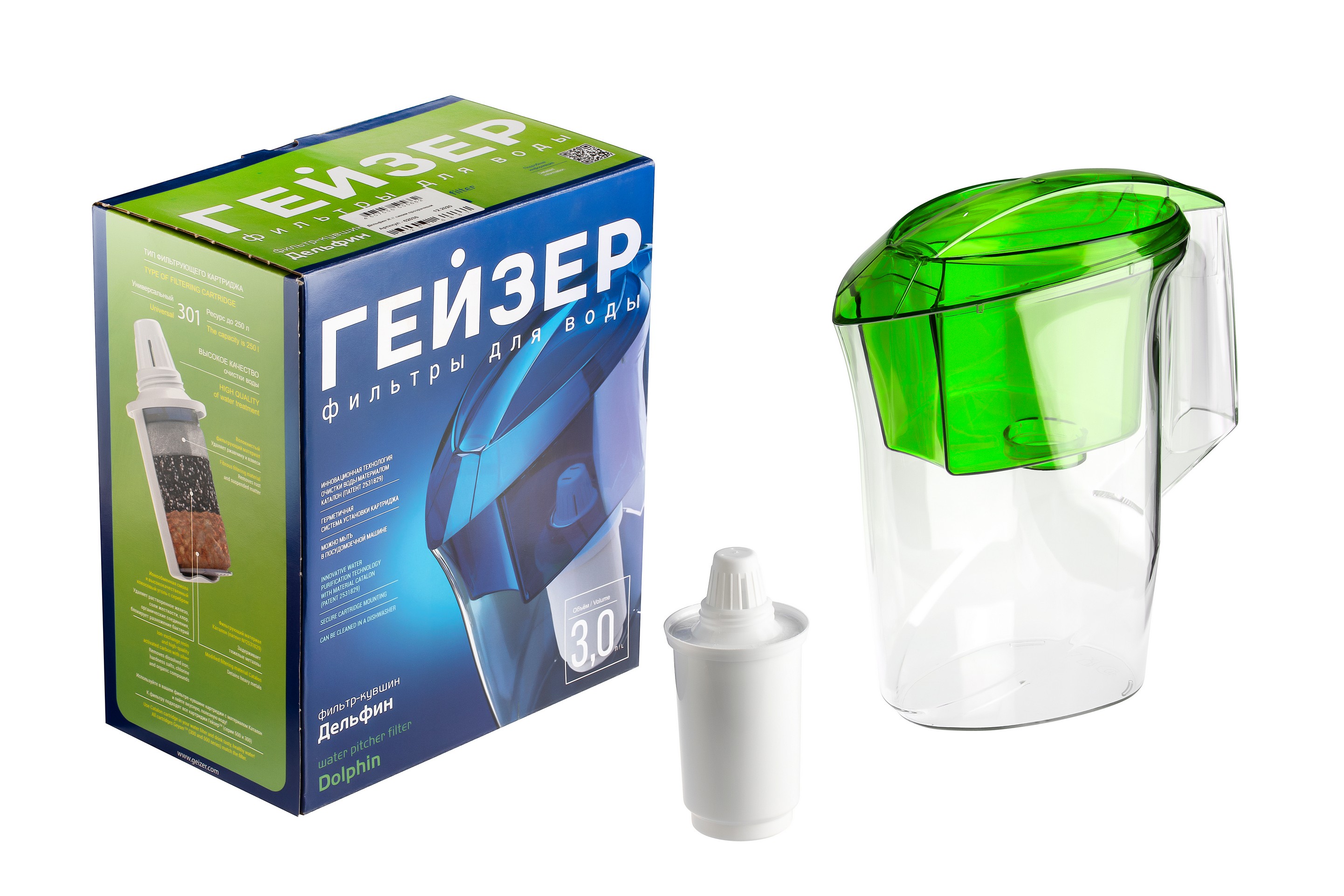 Фильтр-кувшин Гейзер Аквилон не требует стационарного подключения к водопроводу. Используется для очистки водопроводной и скважиной воды. В производстве фильтра применен современный безопасный пищевой пластик. Картридж Гейзер 501 для фильтра-кувшина, входящий в комплект, вкручивается в приемную воронку кувшина, обеспечивая герметичное соединение, что позволяет исключить протечку исходной воды. Картридж состоит из материала Каталон, ионообменной смолы и кокосового угля (удаляет ржавчину, растворенное железо, органические соединения, тяжёлые металлы, хлор и др. виды примесей). Содержание активного серебра в несмываемой форме блокирует размножение бактерий.