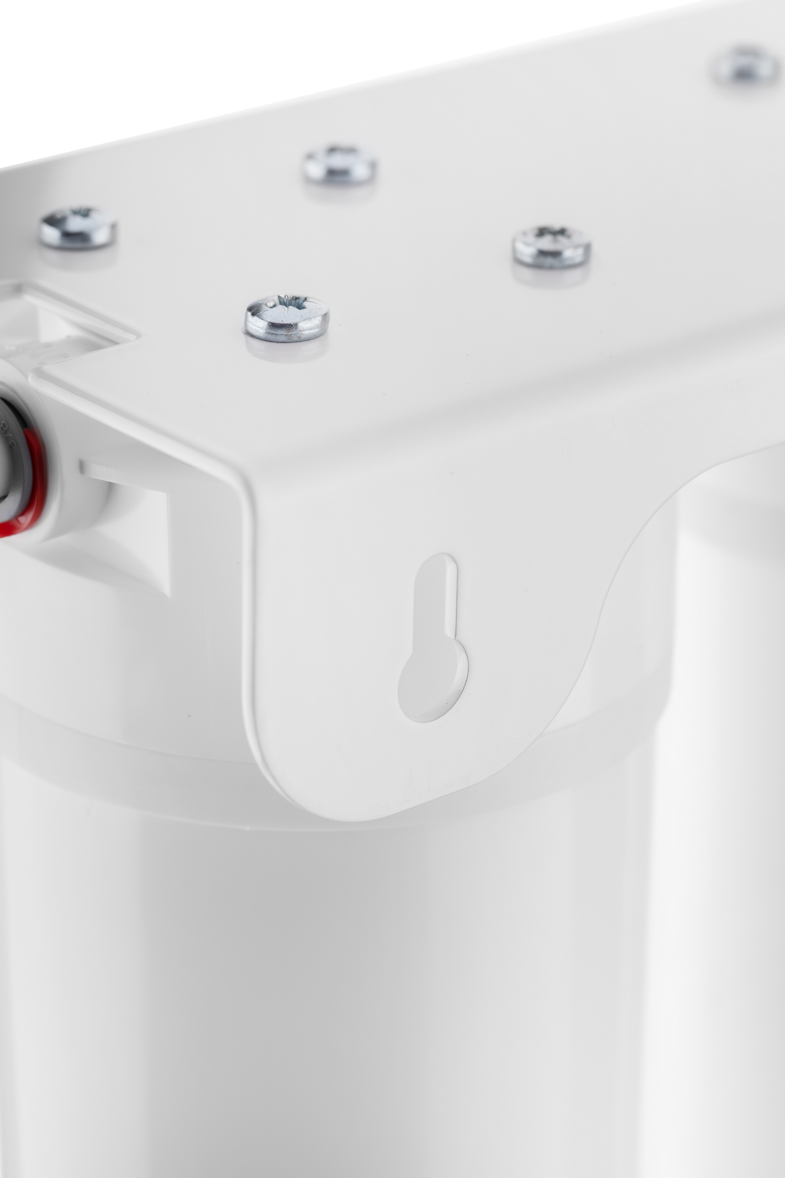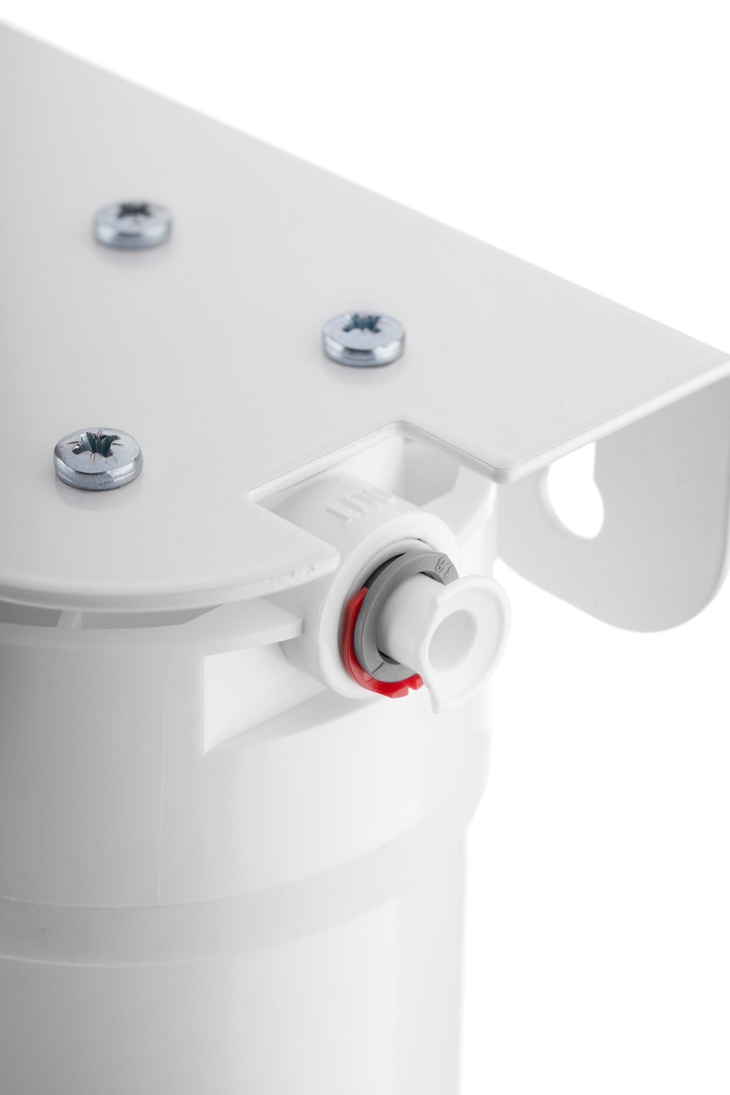 Благодаря быстросъёмному корпусу замена фильтрующего картриджа выполняется очень быстро и без применения дополнительных инструментов.