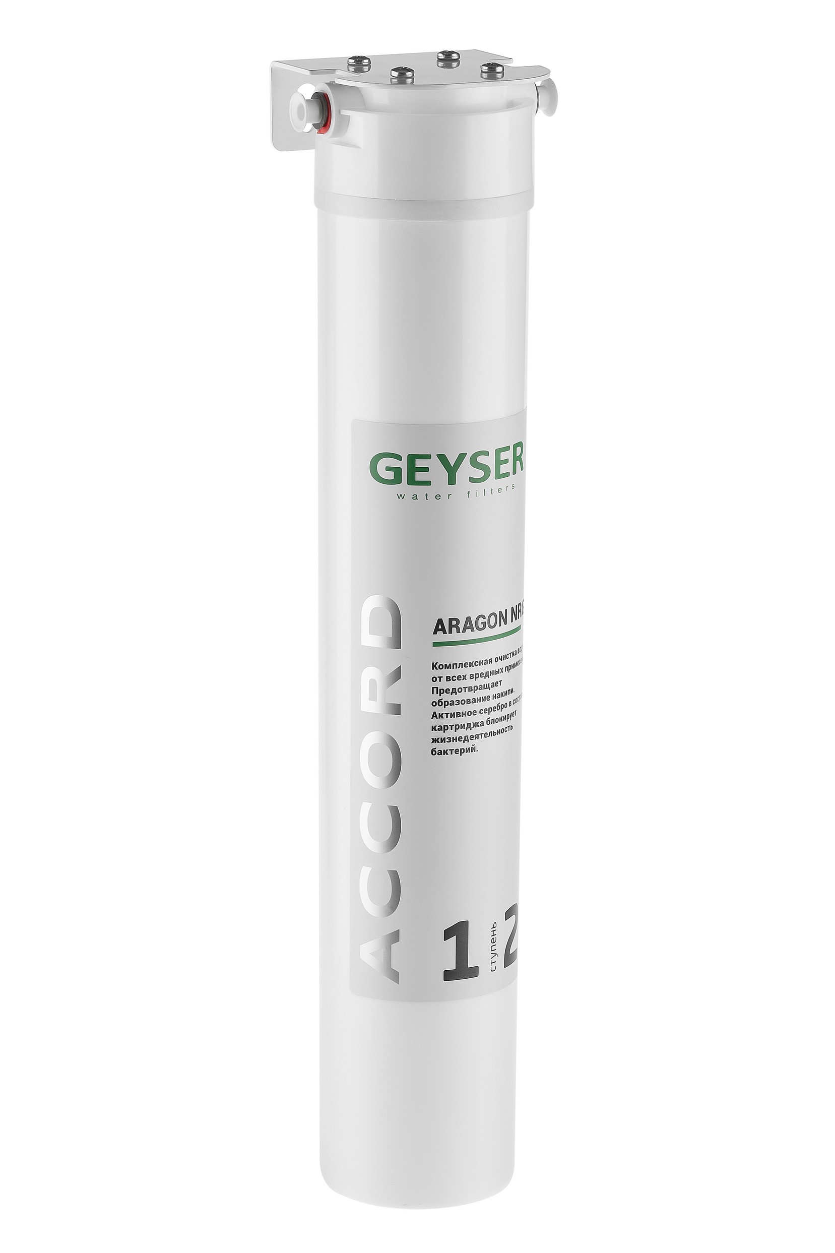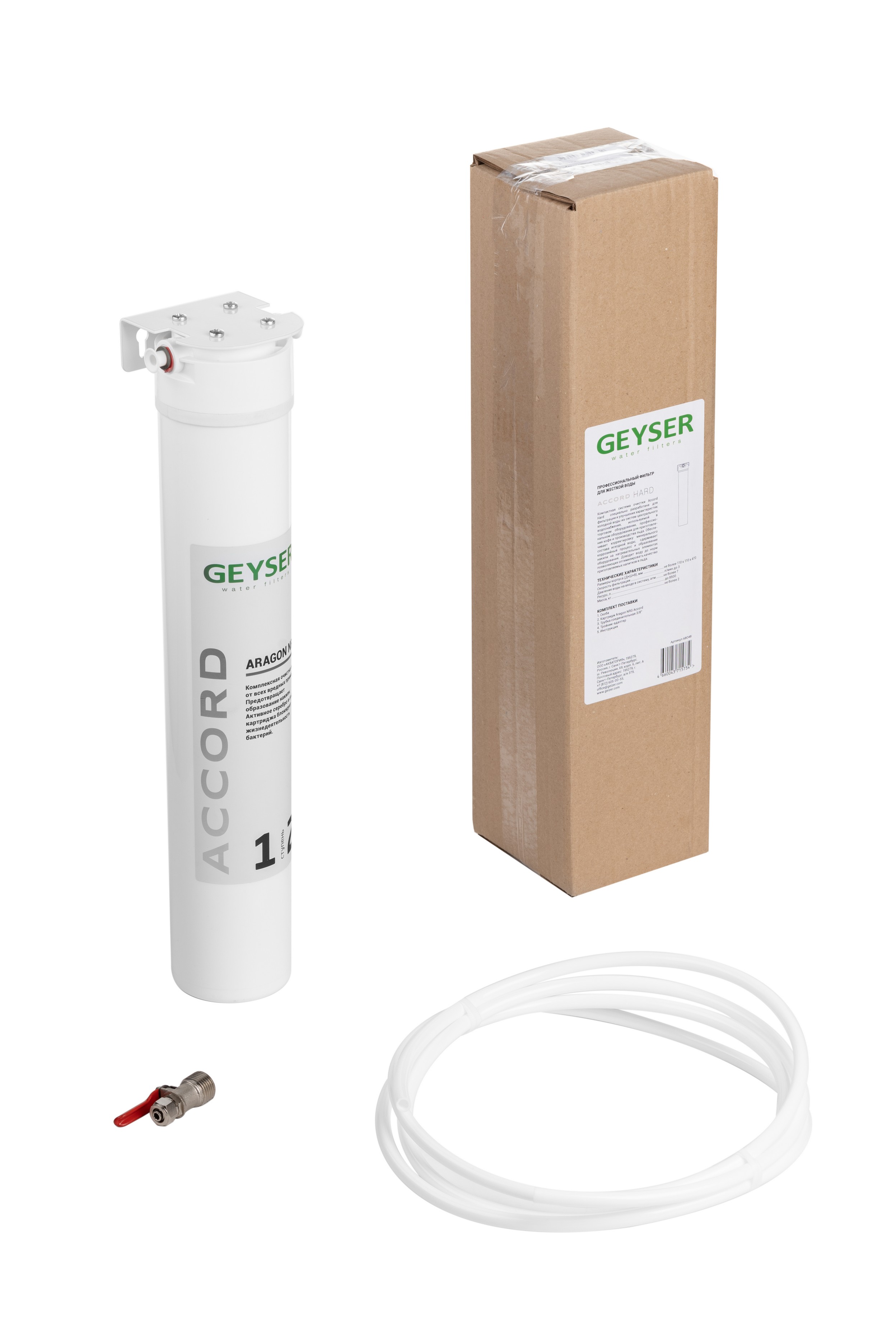 Geyser Accord Hard – компактный фильтр, специально разработанный для улучшения характеристик холодной воды из систем центрального водоснабжения, используемой в торговом оборудовании, профессиональном оборудовании для приготовления кофе и производства льда. Фильтр обеспечивает корректировку минерального состава исходной воды, сдерживает коррозийный процесс и образование накипи на нагревательных элементах оборудования. Фильтр доводит воду до норм, позволяющих оптимизировать качество приготовляемых напитков и льда.