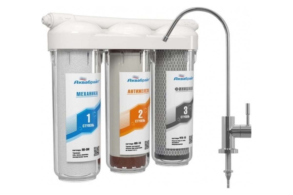 Фильтр под мойку Аквабрайт АБФ Триа Антижелезо с краном (для железистой воды) (АБФ-ТРИА - АНТИЖЕЛЕЗО)