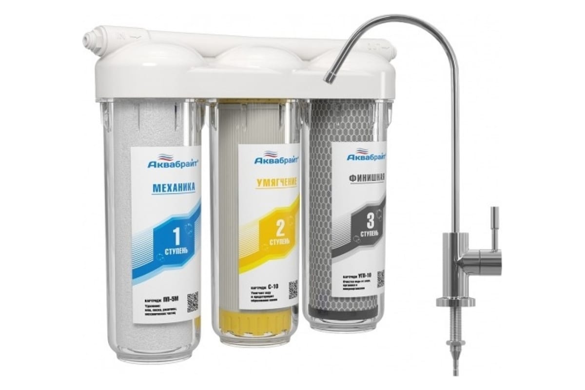 Фильтр под мойку Аквабрайт АБФ Триа Умягчение с краном (для жесткой воды) (АБФ-ТРИА - УМЯГЧЕНИЕ)