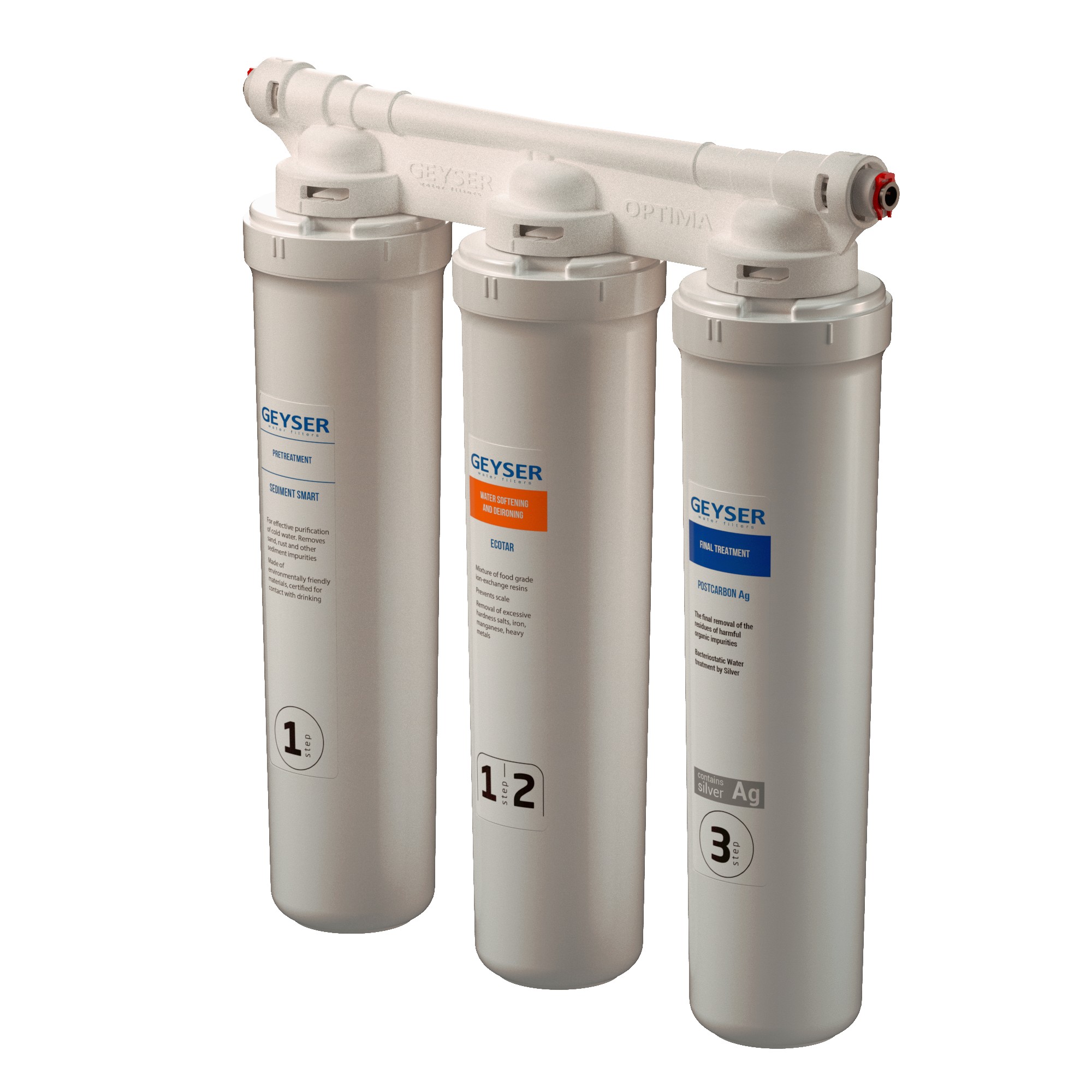 Фильтр Гейзер Оптима Старт предназначен для доочистки водопроводной воды от примесей, таких как железо, бактерии, хлорорганические и органические примеси, хлор, тяжелые металлы и механические частицы, избыток солей жесткости. Предотвращает образование накипи. Улучшает органолептические показатели воды: вкус, цвет и запах.