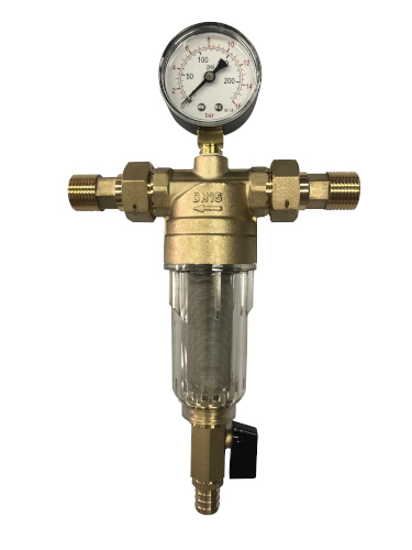Самопромывной фильтр с манометром предназначен для очистки воды с возможностью удаления накопившихся загрязнений без извлечения сетчатых вставок (промывной фильтр).
