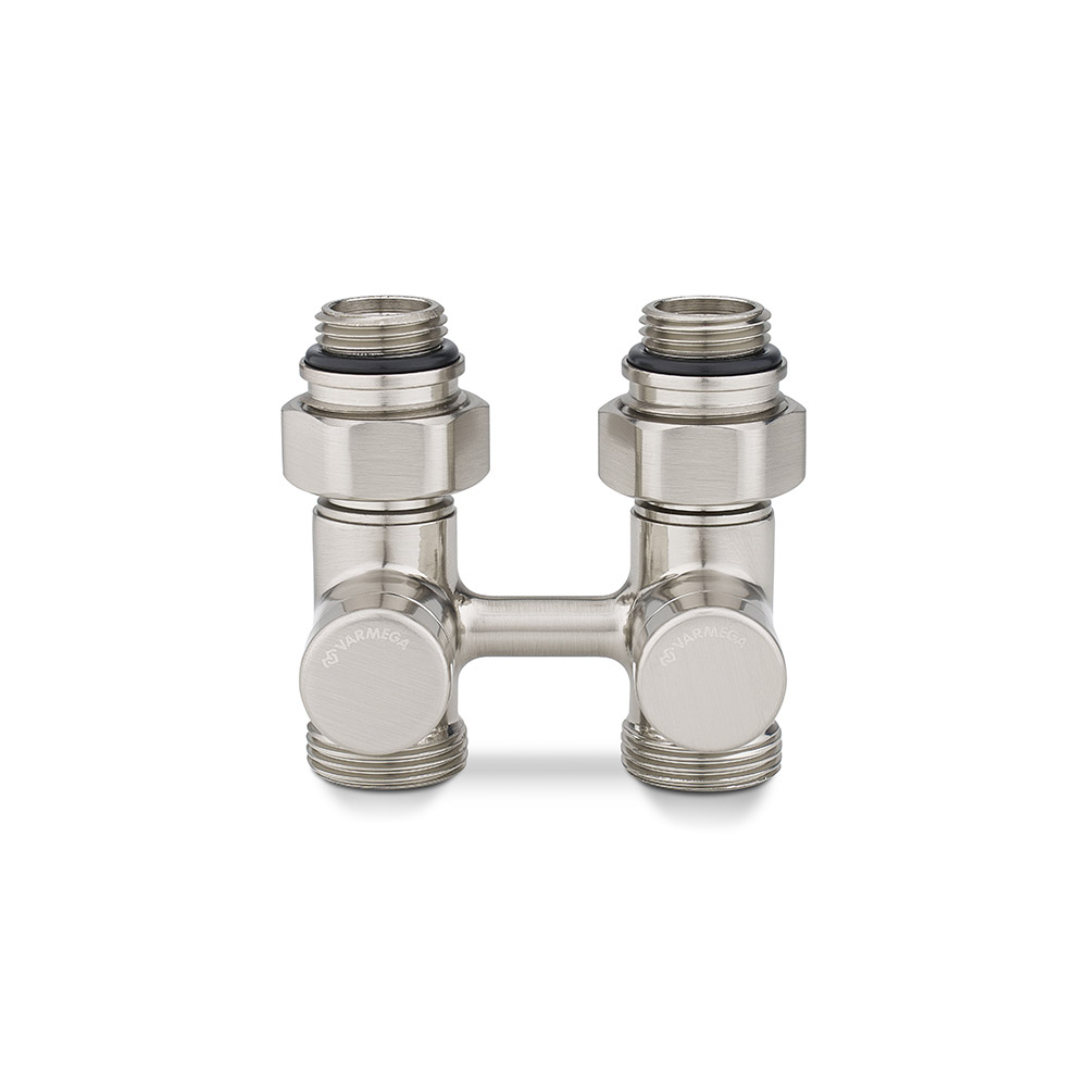 • Сдвоенный с межосевым расстоянием 50 мм в угловом и прямом исполнении, предназначен для подключения радиаторов к двухтрубной системе